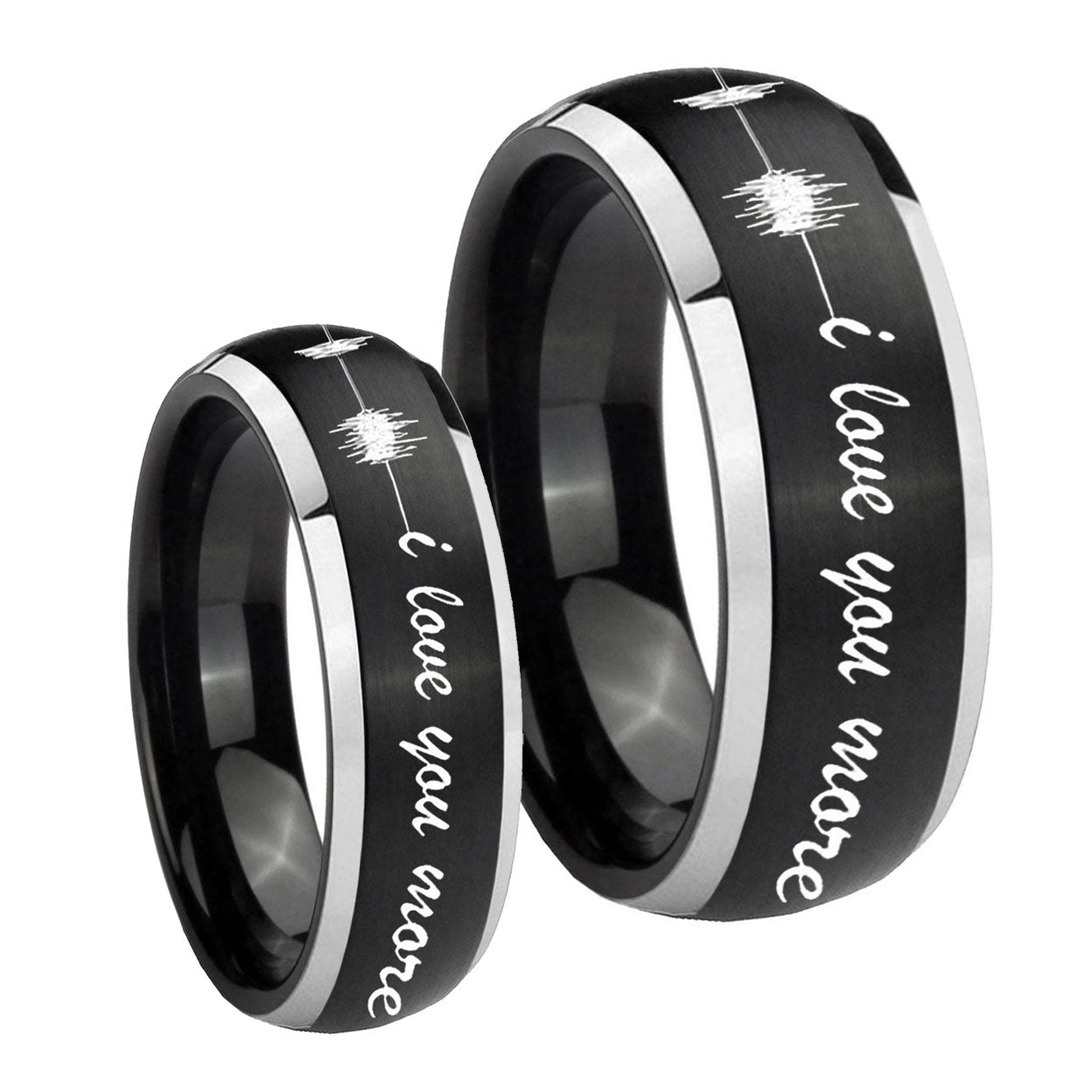 Celebrate with the His And Hers Sound Wave I love you more Dome Glossy Black 2 Tone Tungsten Men's Band Ring.