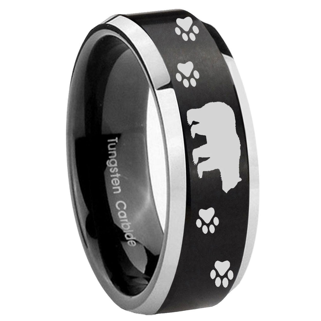 Celebrate with the His And Hers Bear and Paw Beveled Brush Black 2 Tone Tungsten Anniversary Ring.