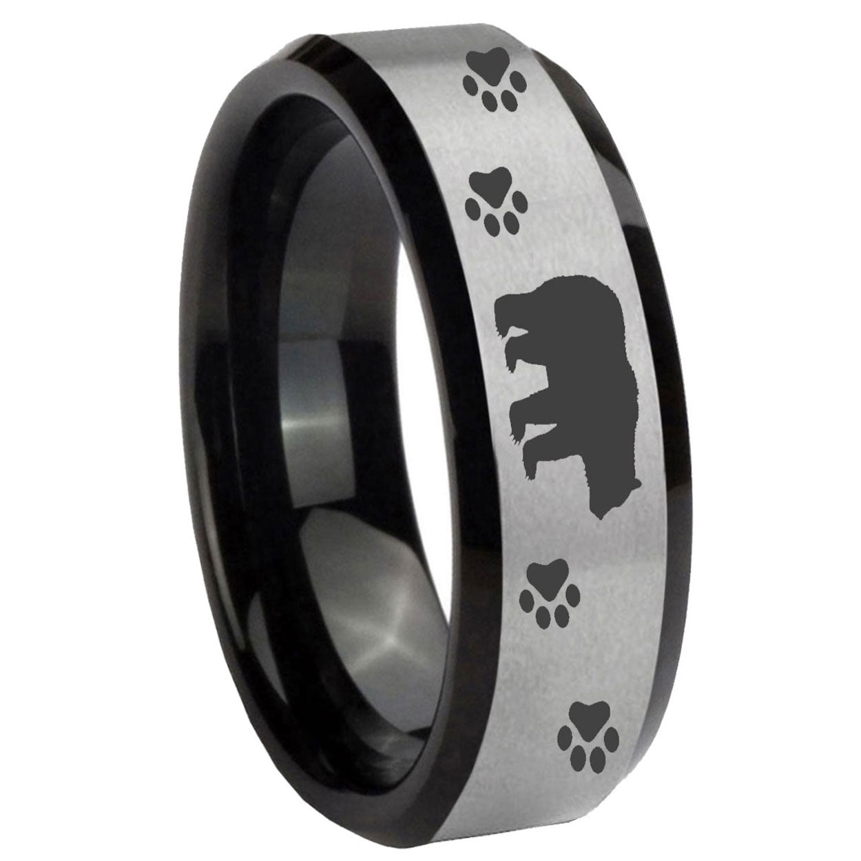 His Hers Bear and Paw Beveled Brush Black 2 Tone Tungsten Wedding Bands Ring Set