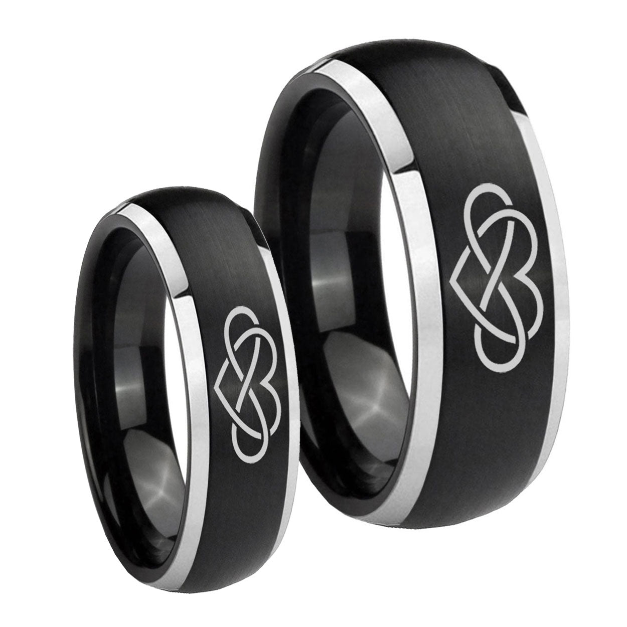 His Hers Infinity Love Dome Brushed Black 2 Tone Tungsten Wedding Band Ring Set