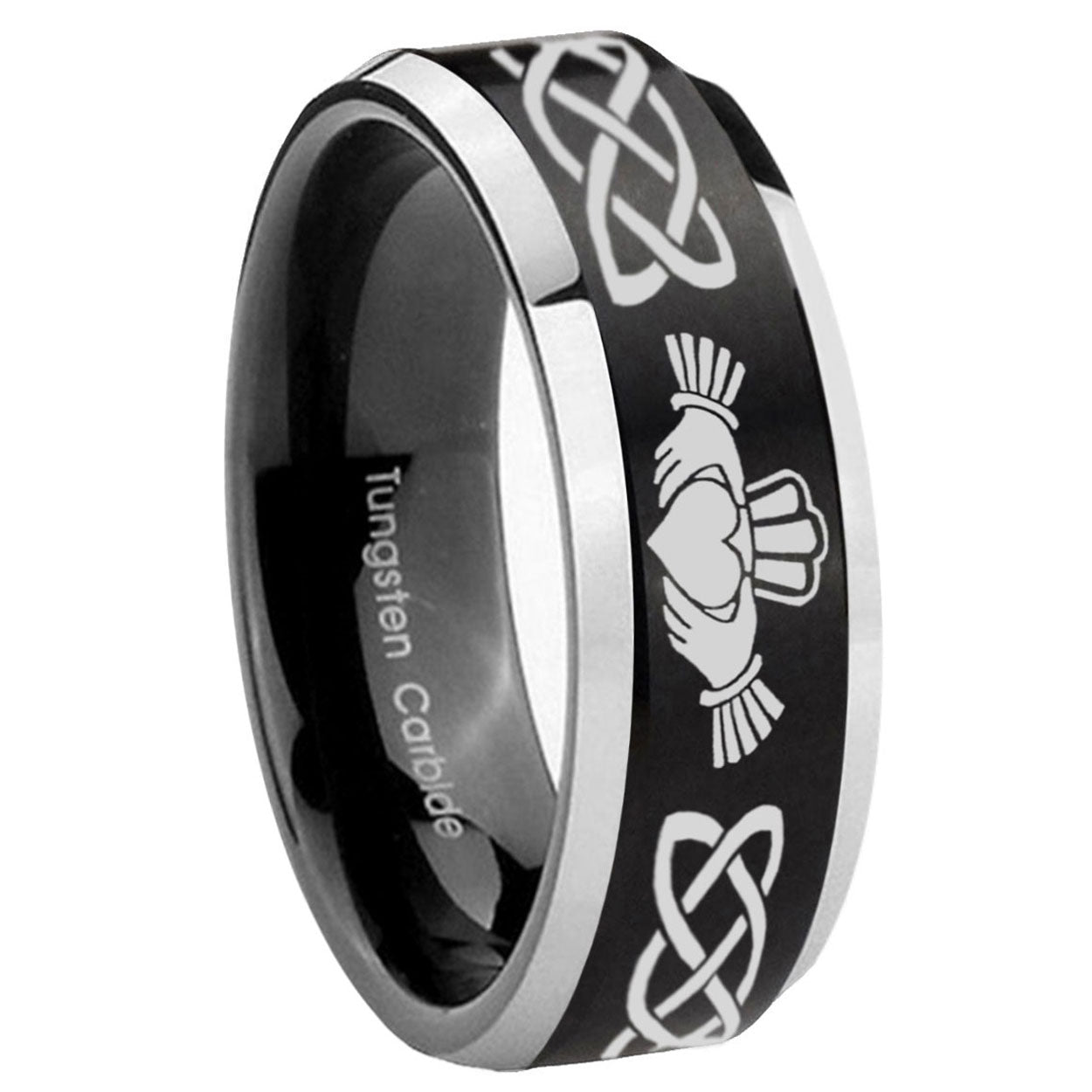 His Hers Irish Claddagh Beveled Brush Black 2 Tone Tungsten Mens Promise Ring Set