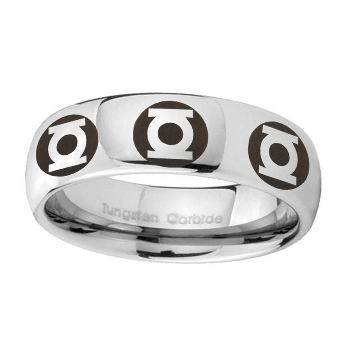 5, 8mm Multiple Green Lantern Dome Polish Silver Mens Work Wedding Rings