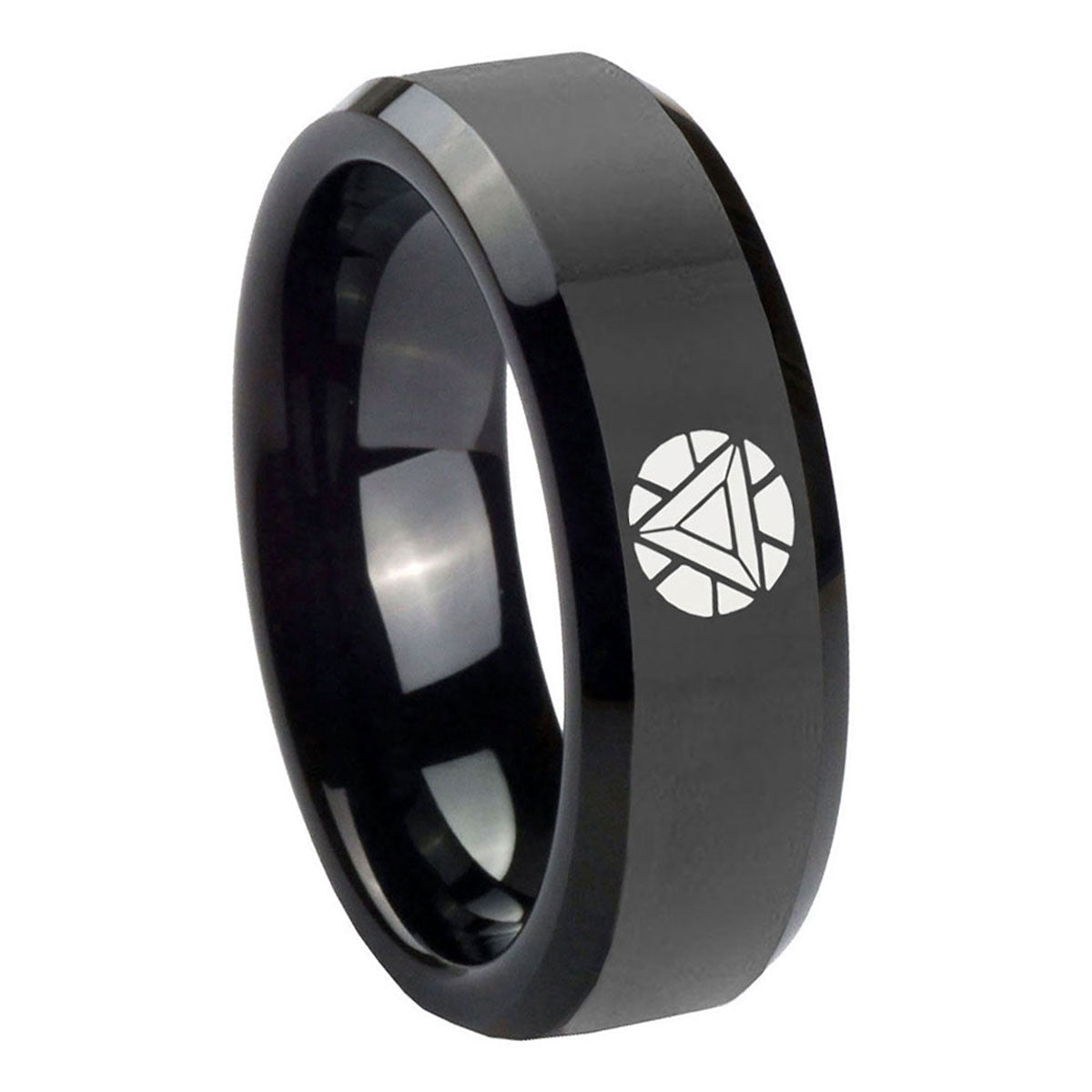 5, 8mm Iron Man Art Reactor Beveled Edge Polish Black Tungsten Rings