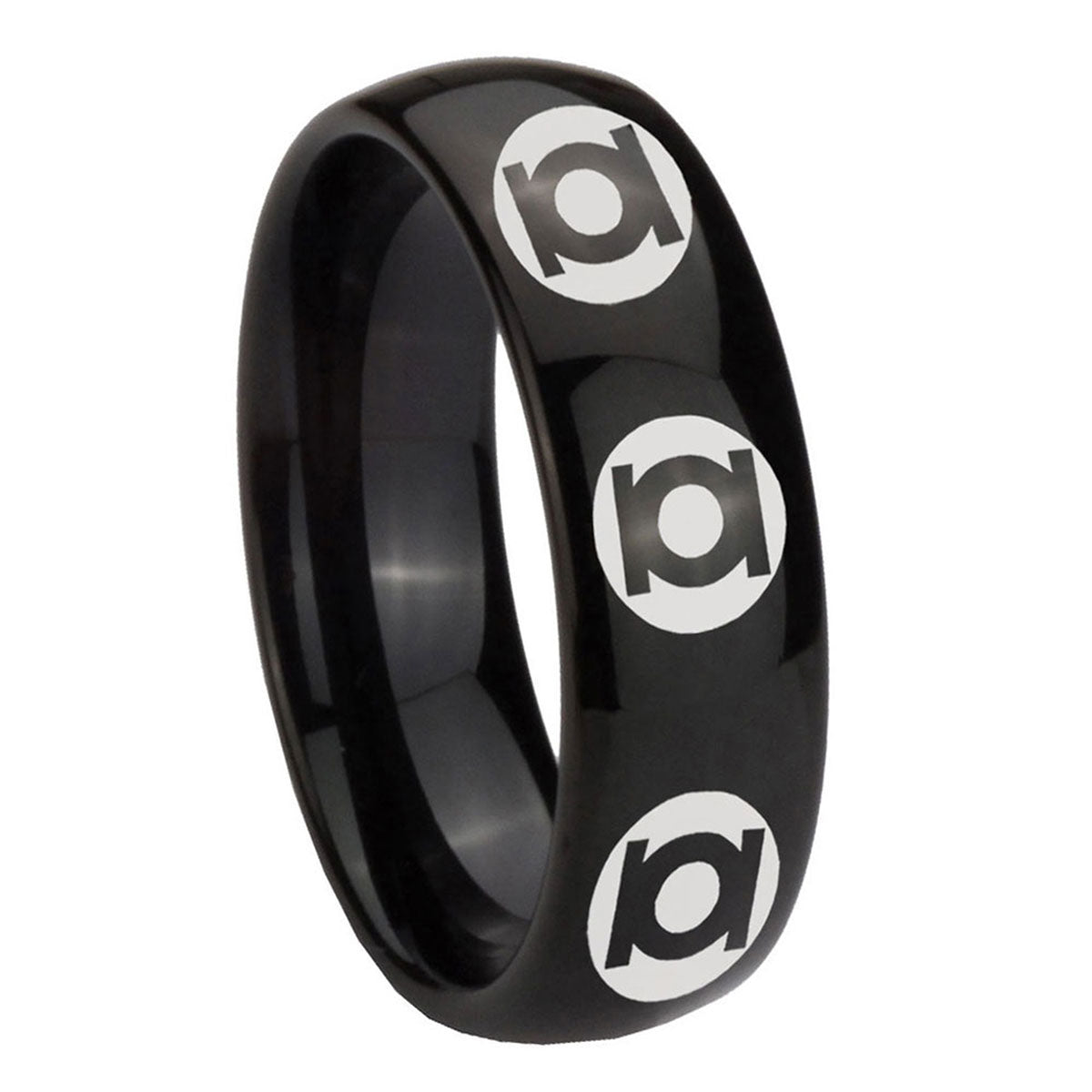 Introuding 5, 8mm Multiple Green Lantern Dome Polish Black Comfort Fit Wedding Bands . Offer in both 5mm and 8mm band width polished black plated finished from size 4 to 14