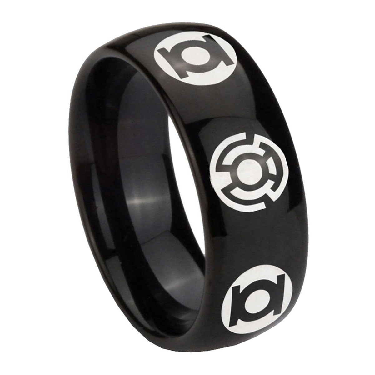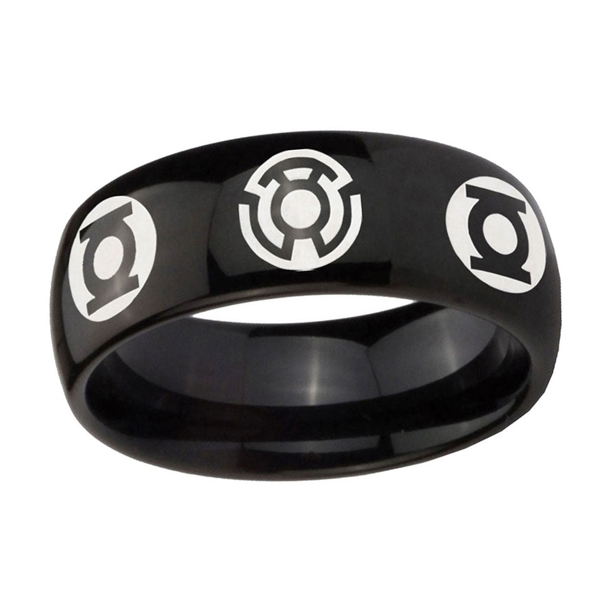 Introuding 5, 8mm Blue Green Lantern Dome Polish Black Tungsten Mens Rings . Offer in both 5mm and 8mm band width polished black plated finished from size 4 to 14