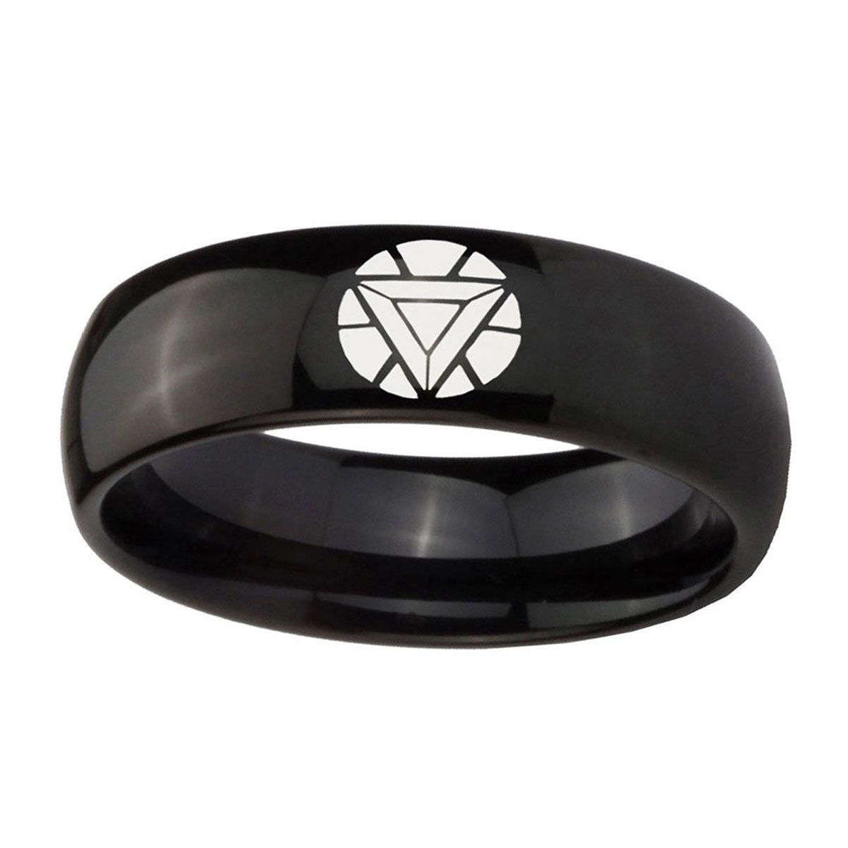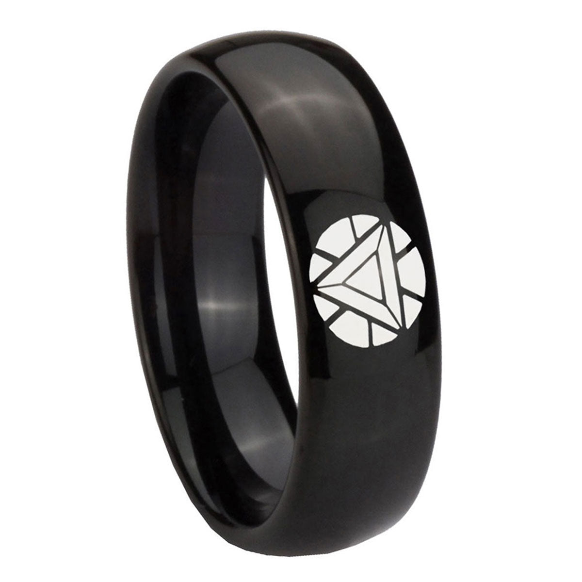 Introuding 5, 8mm Iron Man Art Reactor Dome Polish Black Mens Engraved Wedding Bands . Offer in both 5mm and 8mm band width polished black plated finished from size 4 to 14