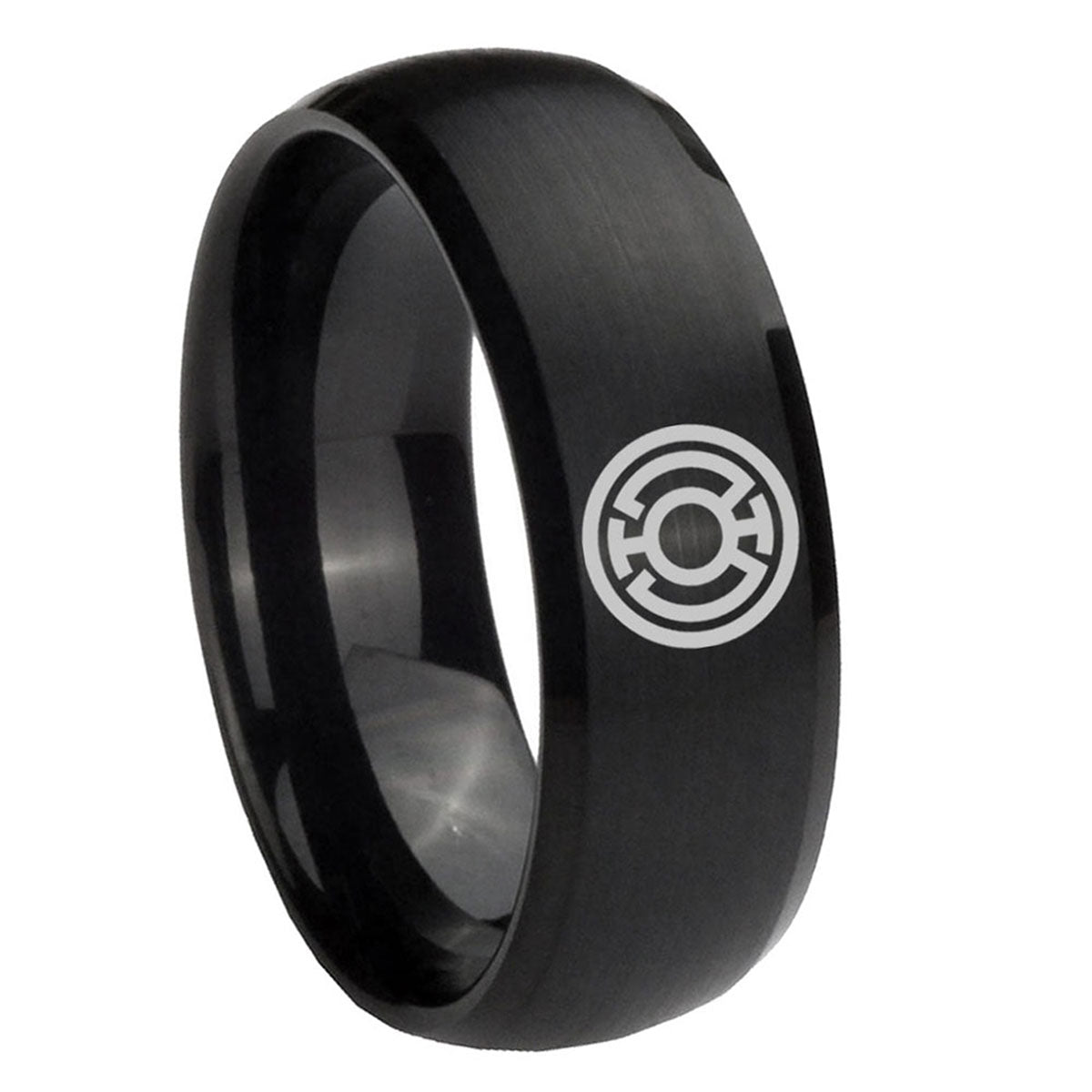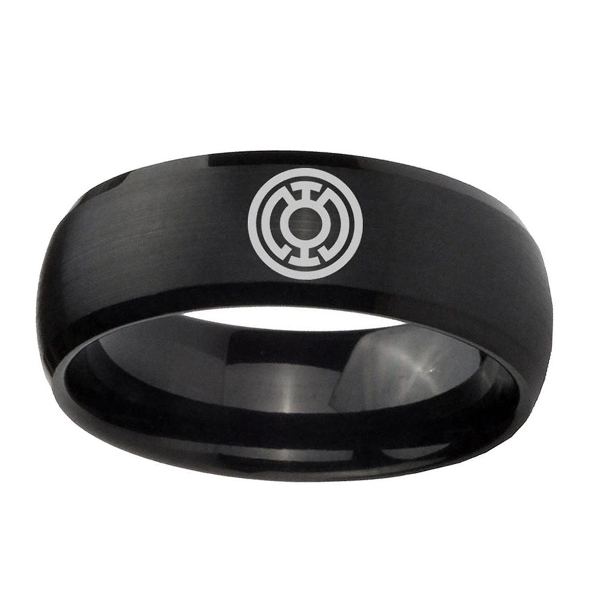 5, 8mm Blue Lantern Dome Matte Black Tungsten Men Ring