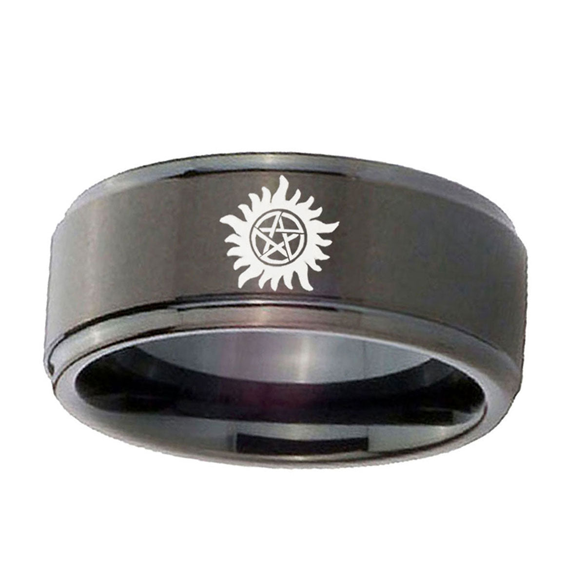 Introuding 5, 8mm Supernatural Step Edge Black Wedding Band For Man . Offer in both 5mm and 8mm band width brushed black plated finished from size 4 to 14
