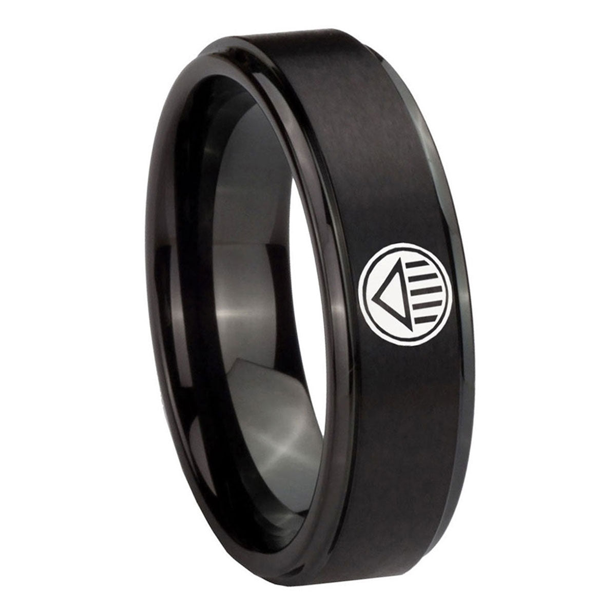 Introuding 5, 8mm Lantern Corps Step Edge Black Mens Steel Wedding Bands . Offer in both 5mm and 8mm band width brushed black plated finished from size 4 to 14
