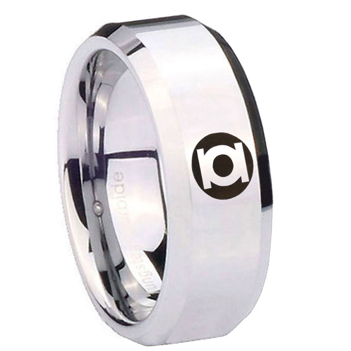 Introuding 5, 8mm Green Lantern Beveled Edge Silver Comfort Fit Wedding Ring . Offer in both 5mm and 8mm band width polished silver finished from size 4 to 14