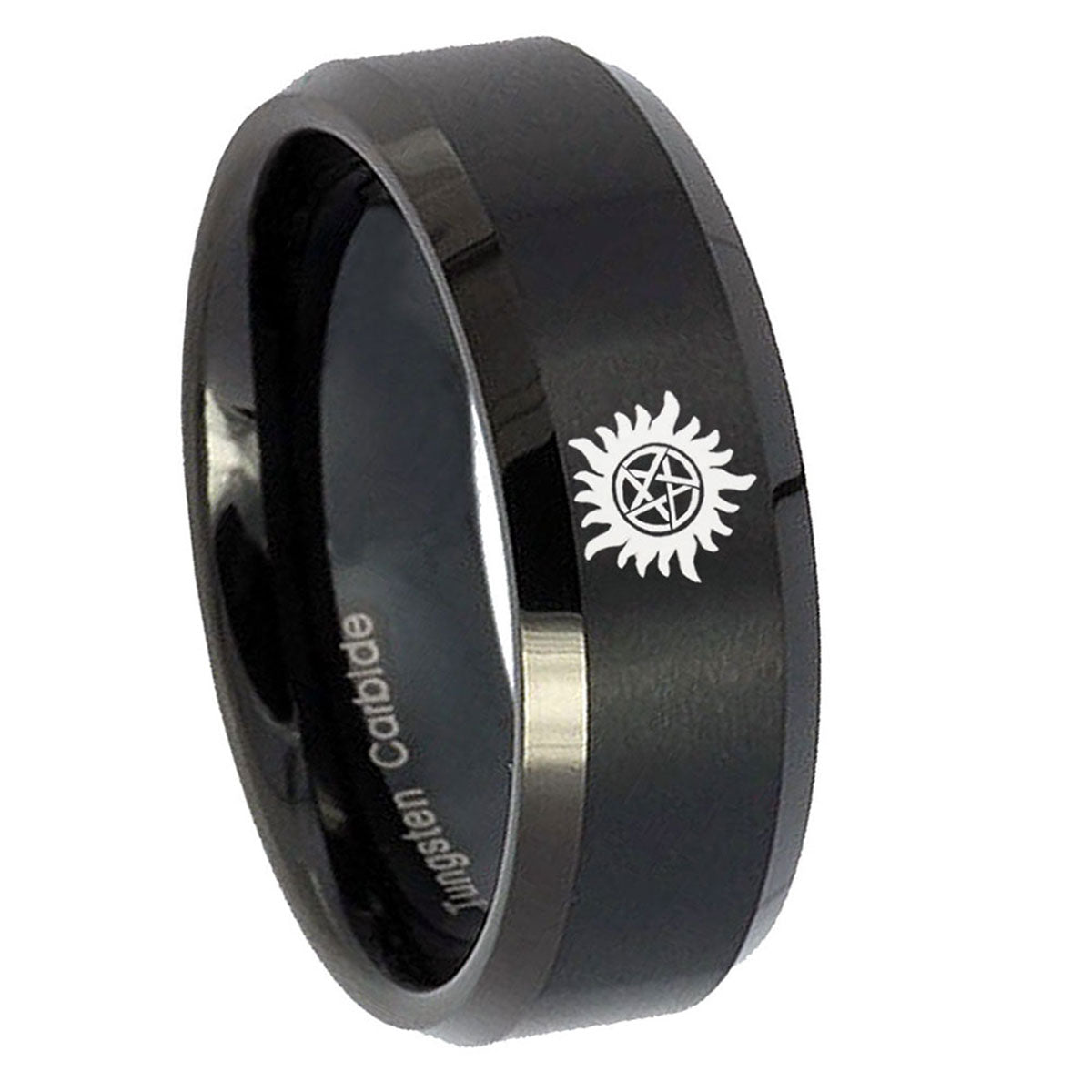 5, 8mm Supernatural Beveled Edge Brushed Black Male Wedding Band