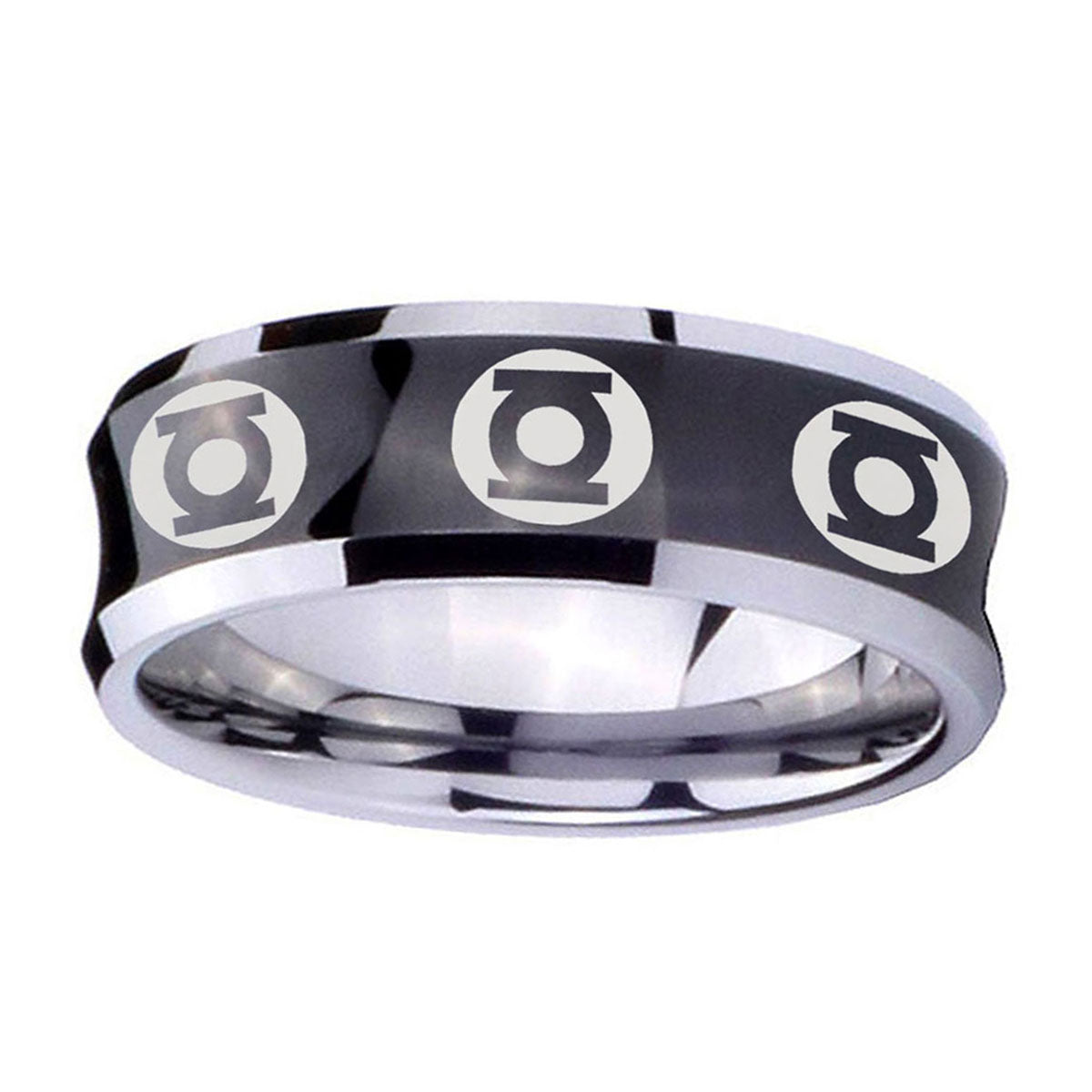 Introuding 5, 8mm Multiple Green Lantern Concave Black Forever Wedding Rings . Offer in both 5mm and 8mm band width black plated two tone finished from size 4 to 14