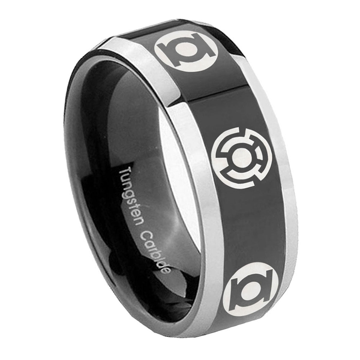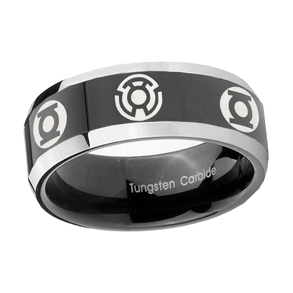 Introuding 5, 8mm Blue Green Lantern Beveled Edge Black Mens Wedding Band Tungsten . Offer in both 5mm and 8mm band width shiny black pated two tone finished from size 4 to 14