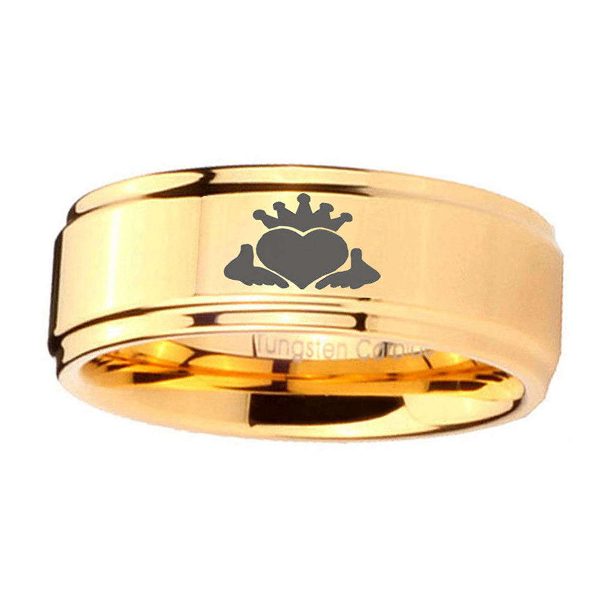 5, 8mm Claddagh Step Edge Gold Tungsten Engagement Rings For Him