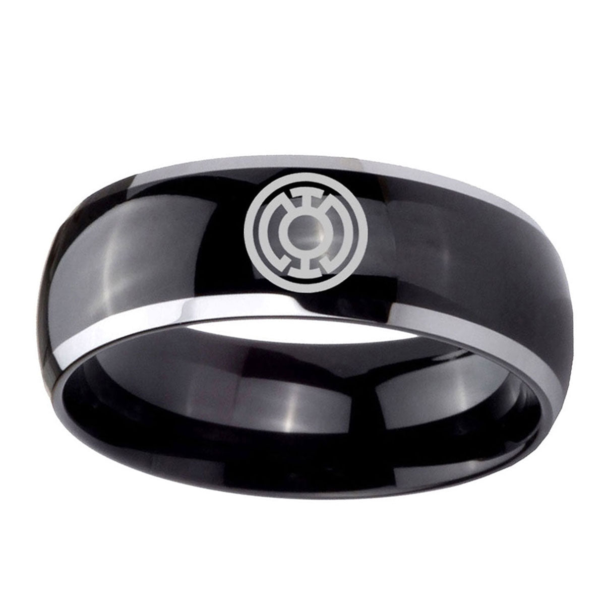 Introuding 5, 8mm Blue Lantern Dome Two Tone Black Tungsten Men's Wedding Band . Offer in both 5mm and 8mm band width polished black plated two tone finished from size 4 to 14