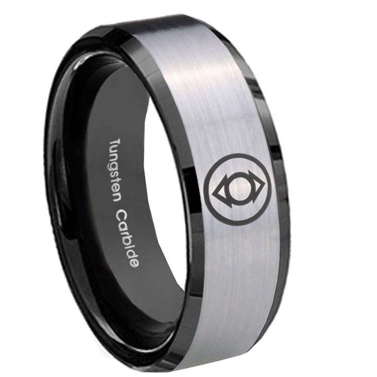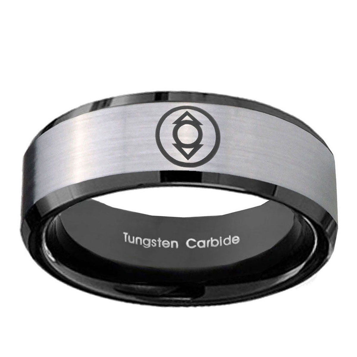5, 8mm Indigo Lanterns Beveled Edge Black Silver Engraved Rings For Him