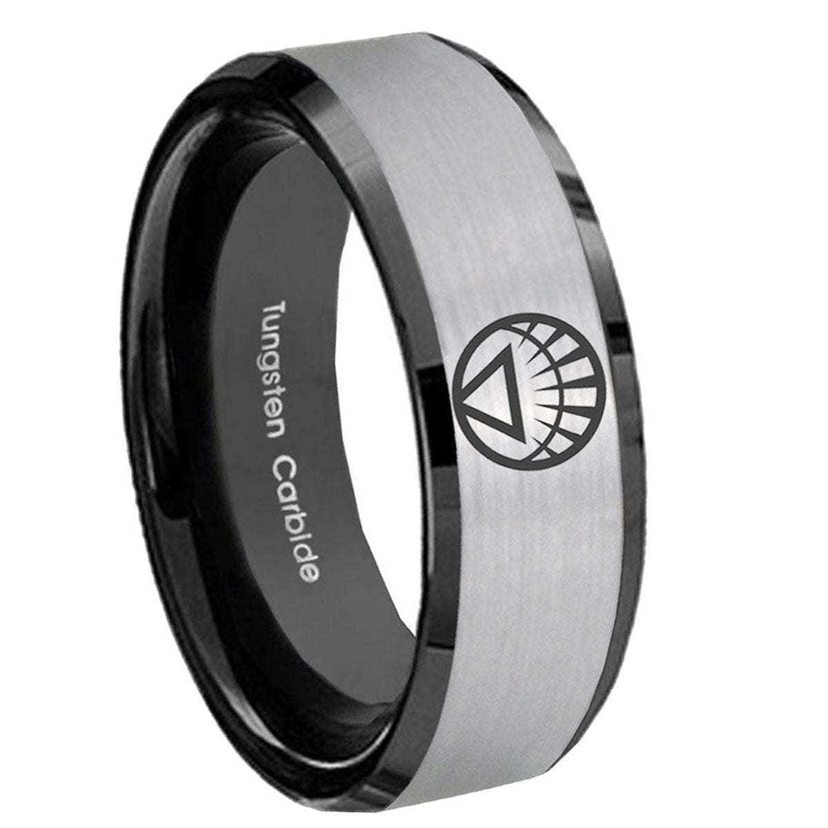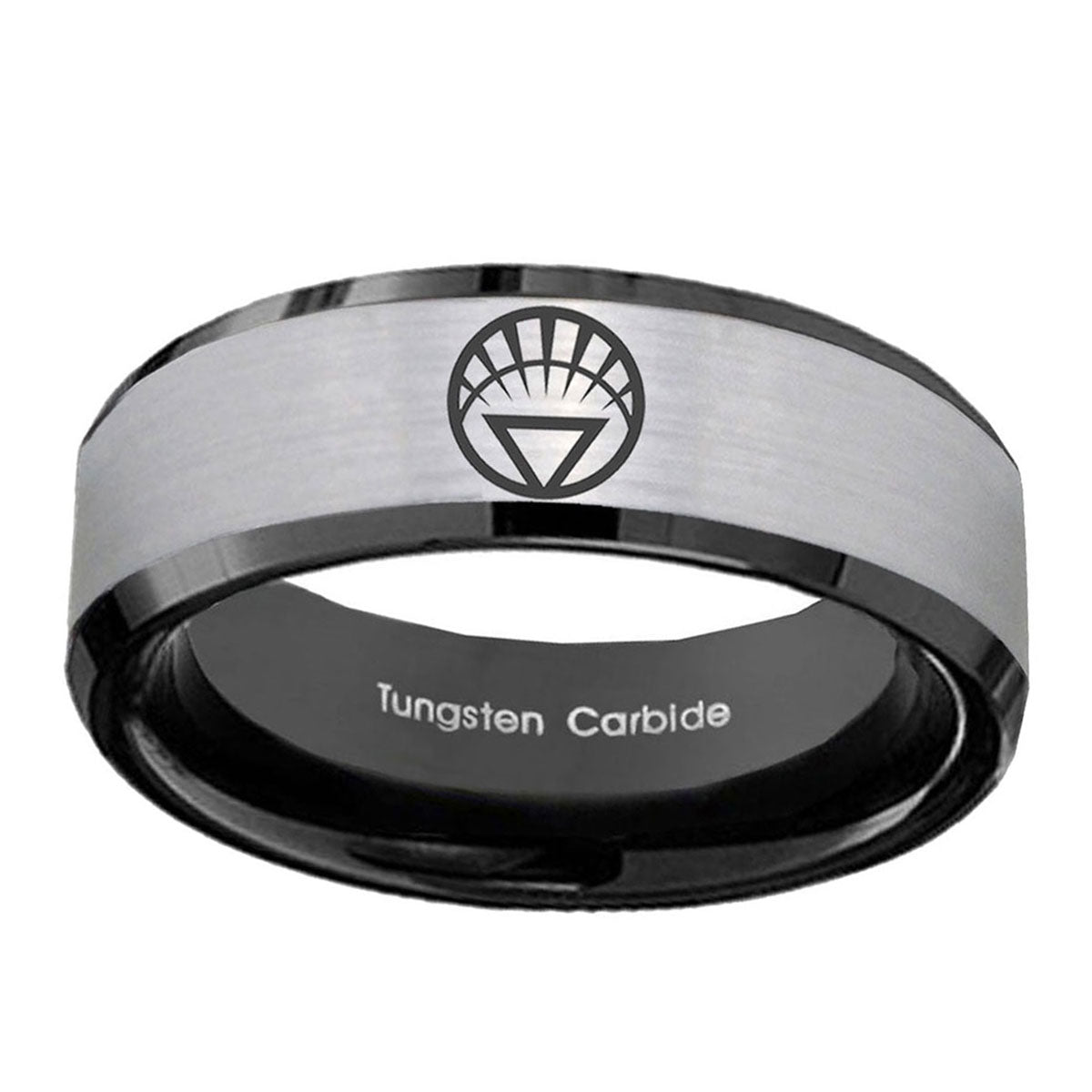 Introuding 5, 8mm White Lantern Beveled Edge Black Silver Mens Rings Tungsten . Offer in both 5mm and 8mm band width brush black 2 tone finished from size 4 to 14