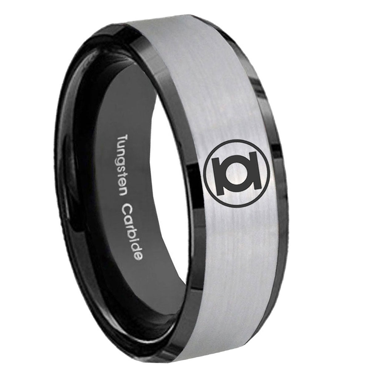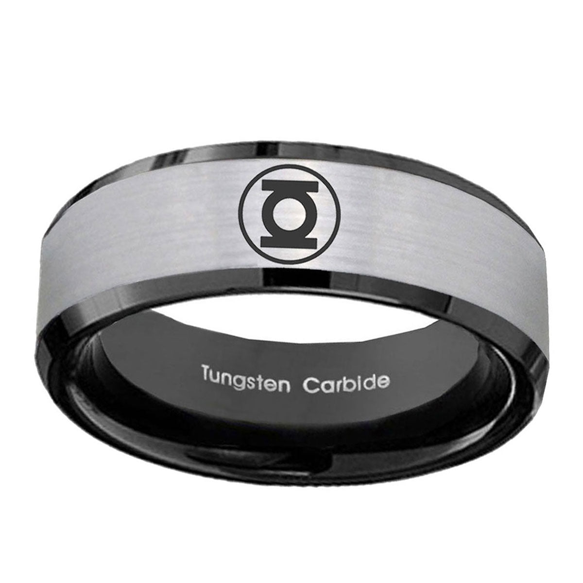 Introuding 5, 8mm Green Lantern Beveled Edge Black Silver Mens Rings Tungsten . Offer in both 5mm and 8mm band width brush black 2 tone finished from size 4 to 14