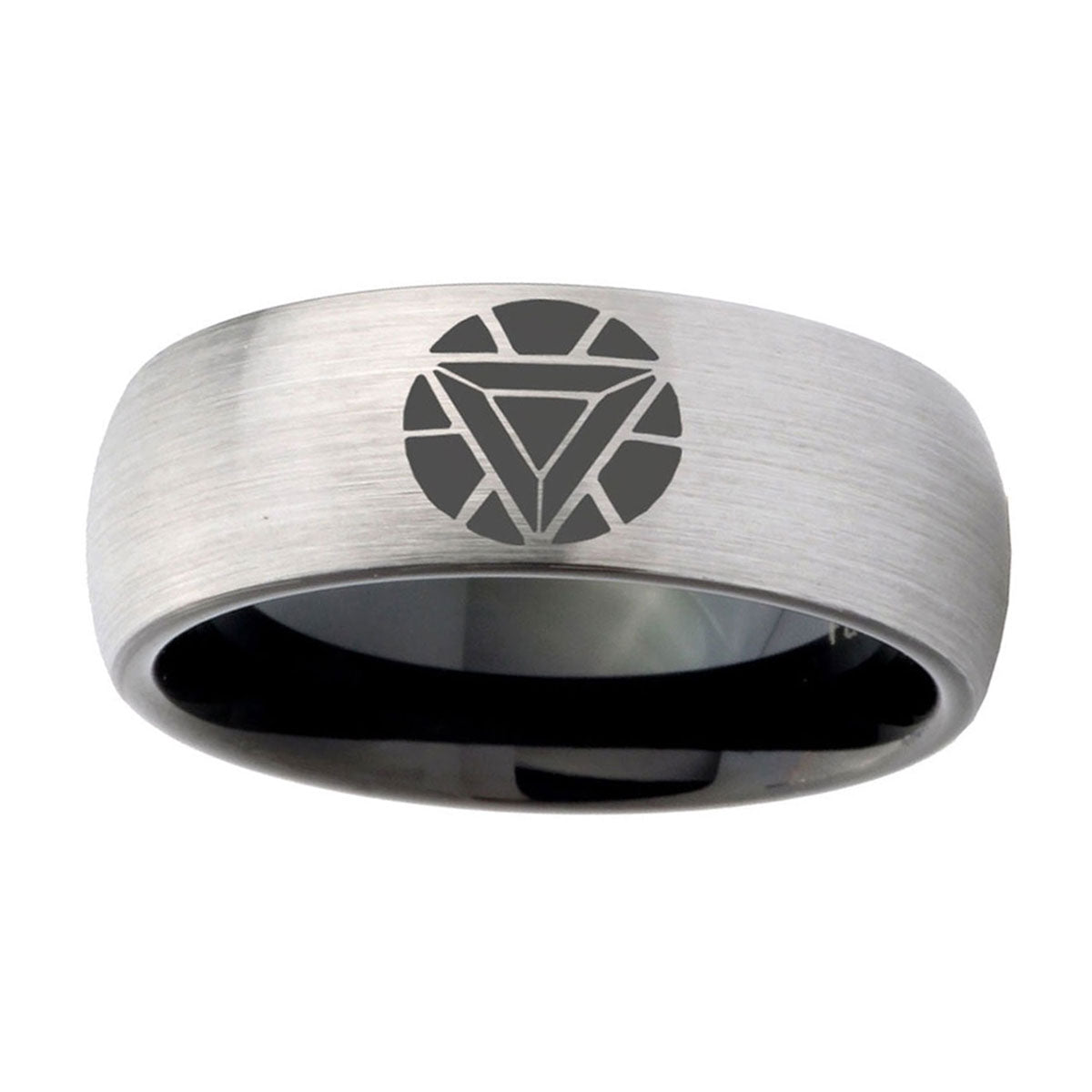 Introuding 6, 8mm Iron Man Art Reactor Dome Silver Mens Tungsten Wedding Band . Offer in both 5mm and 8mm band width silver and black plated finished from size 4 to 14