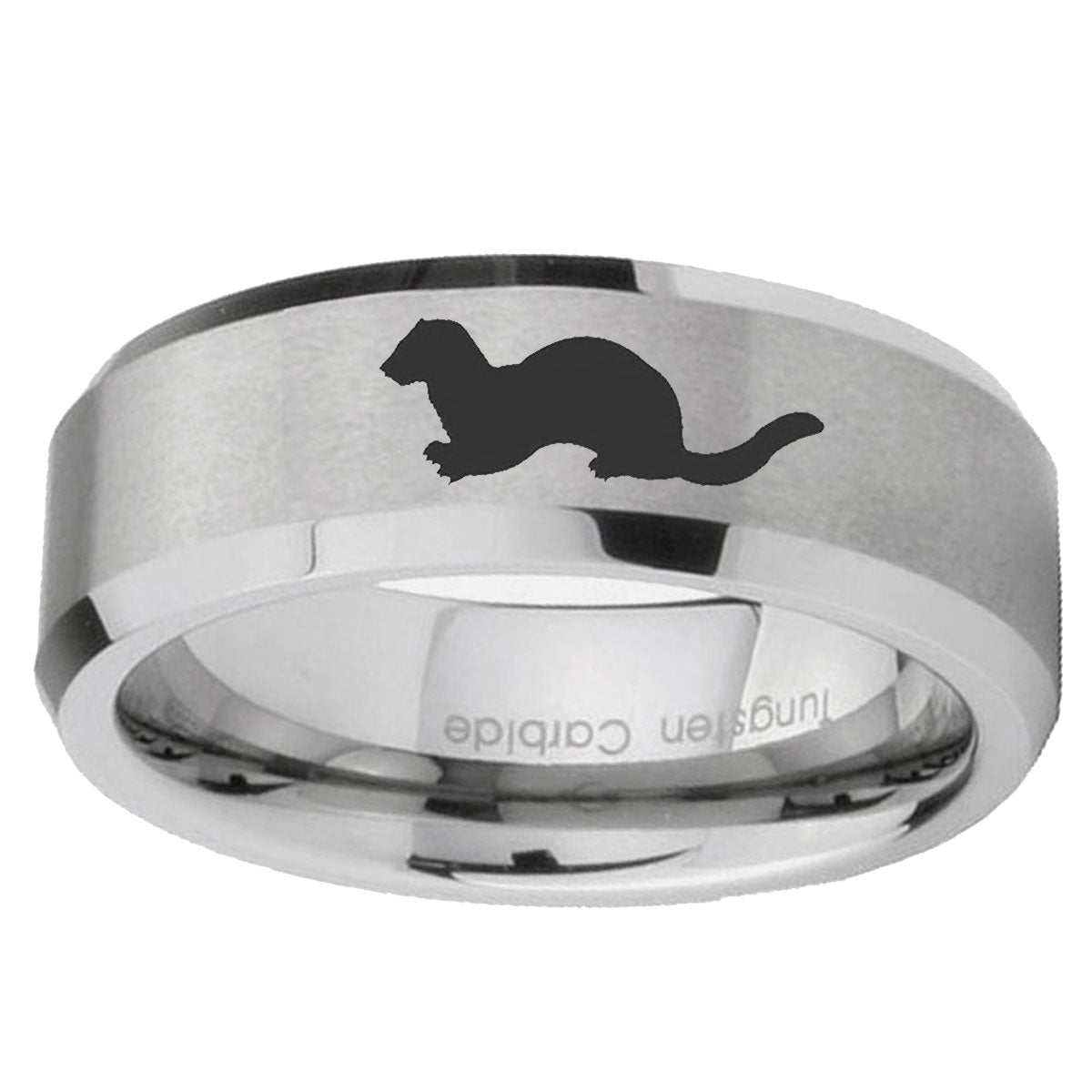 Personalize the 10mm Otter Beveled Edges Matte Grey Tungsten CarbideMens Ring Engraved. This silver tungsten ring with Otter design is perfect for custom engravings.