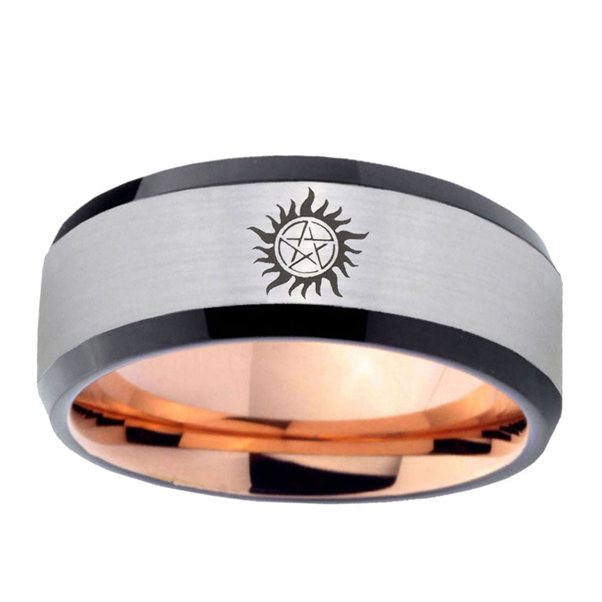 6, 8mm Supernatural Beveled Edge Rose Gold Silver Fashionable Rings For Men