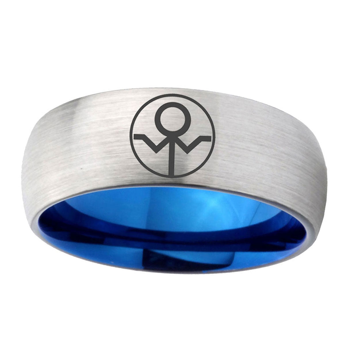 Introuding 6, 8mm Gray Lantern Dome Blue Silver Manly Rings . Offer in both 5mm and 8mm band width silver and blue plated finished from size 4 to 14