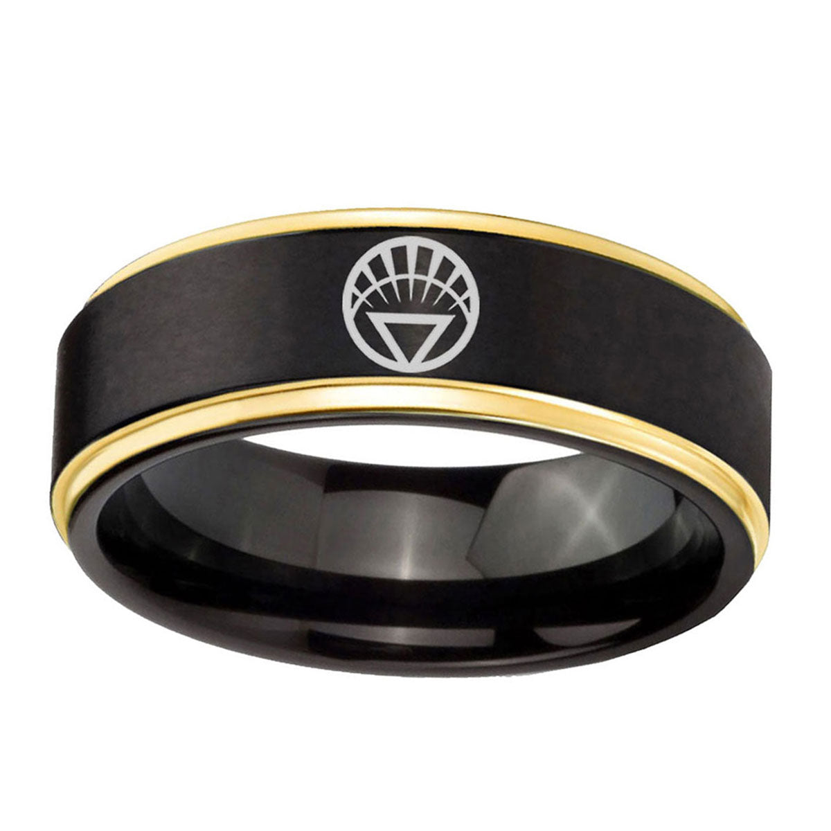 Introuding 6, 8mm White Lantern Step Edge Black Gold Personalized Wedding Bands For Her . Offer in 8mm band width black and gold plated finished from size 7 to 14