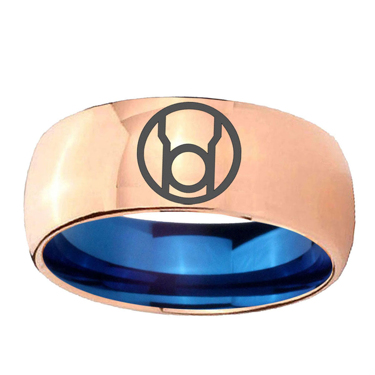 8mm Red Lantern Dome Blue Rose Gold Wedding Ring For Man