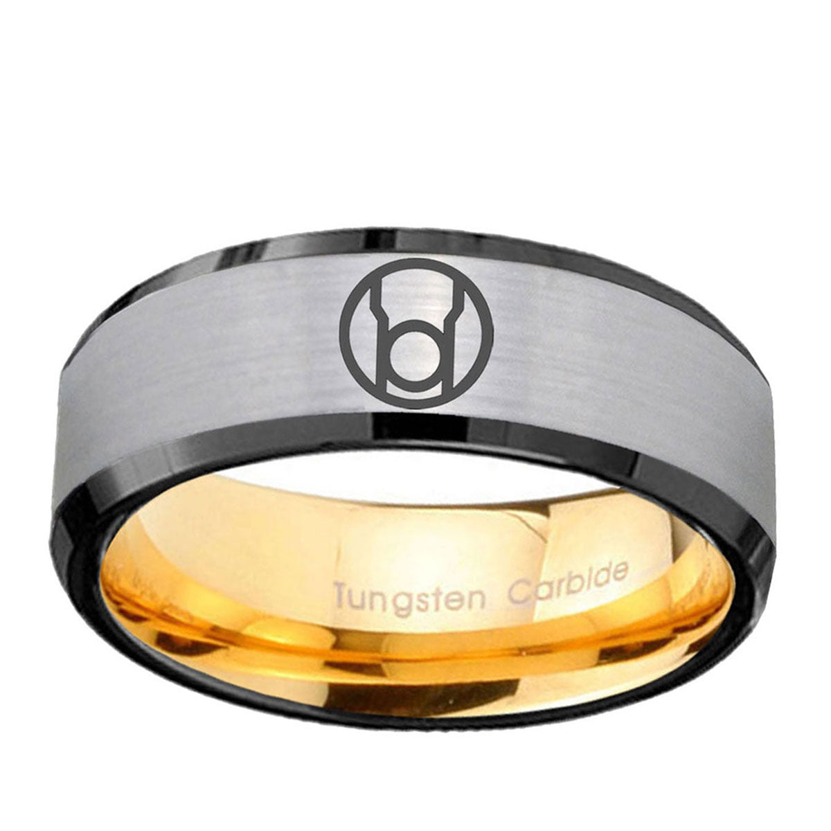 Introuding 8mm Red Lantern Beveled Edge Gold Silver Steel Rings . Offer in 8mm band width silver and gold plated finished from size 7 to 14
