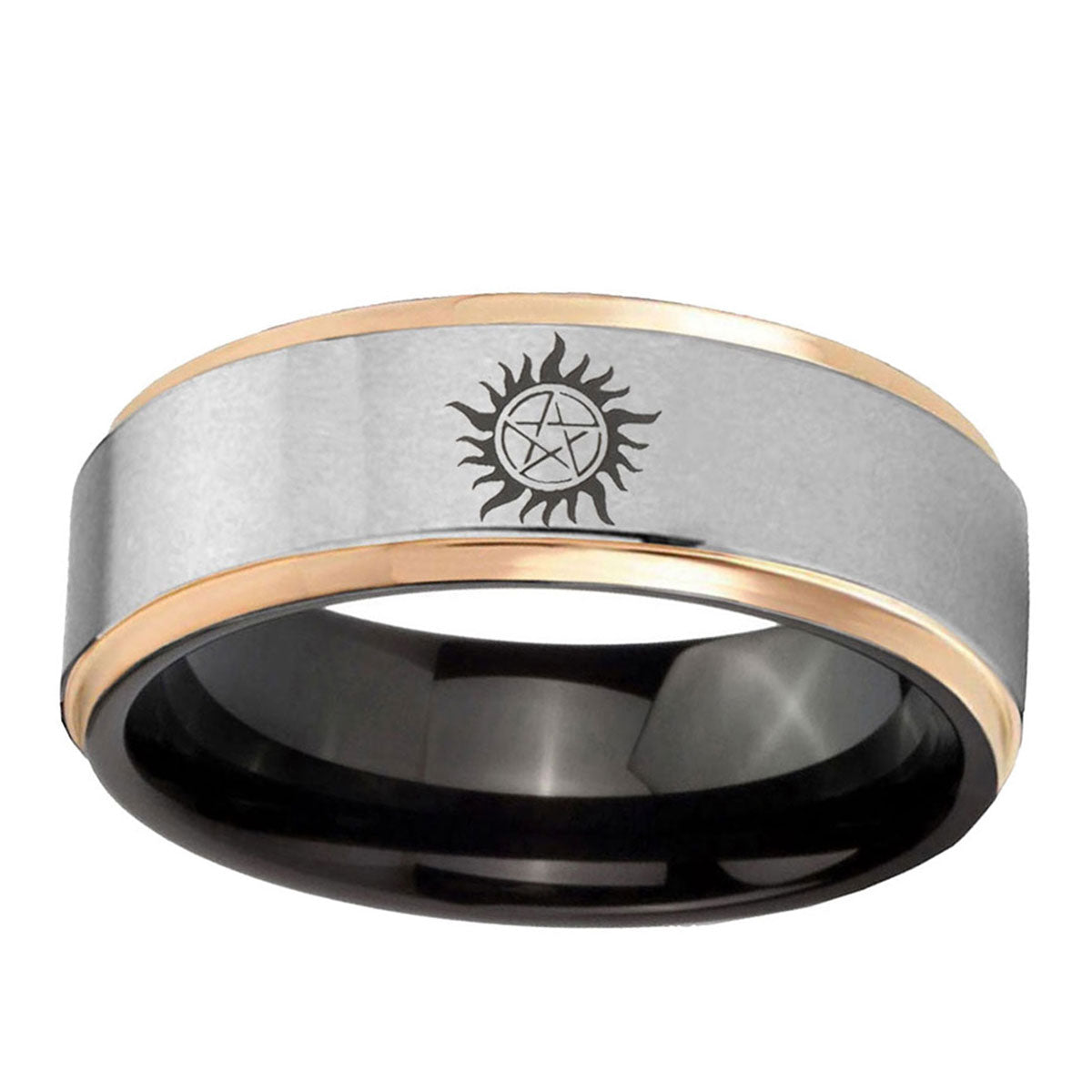 8mm Supernatural Step Edge Rose Gold Silver Engrave Rings
