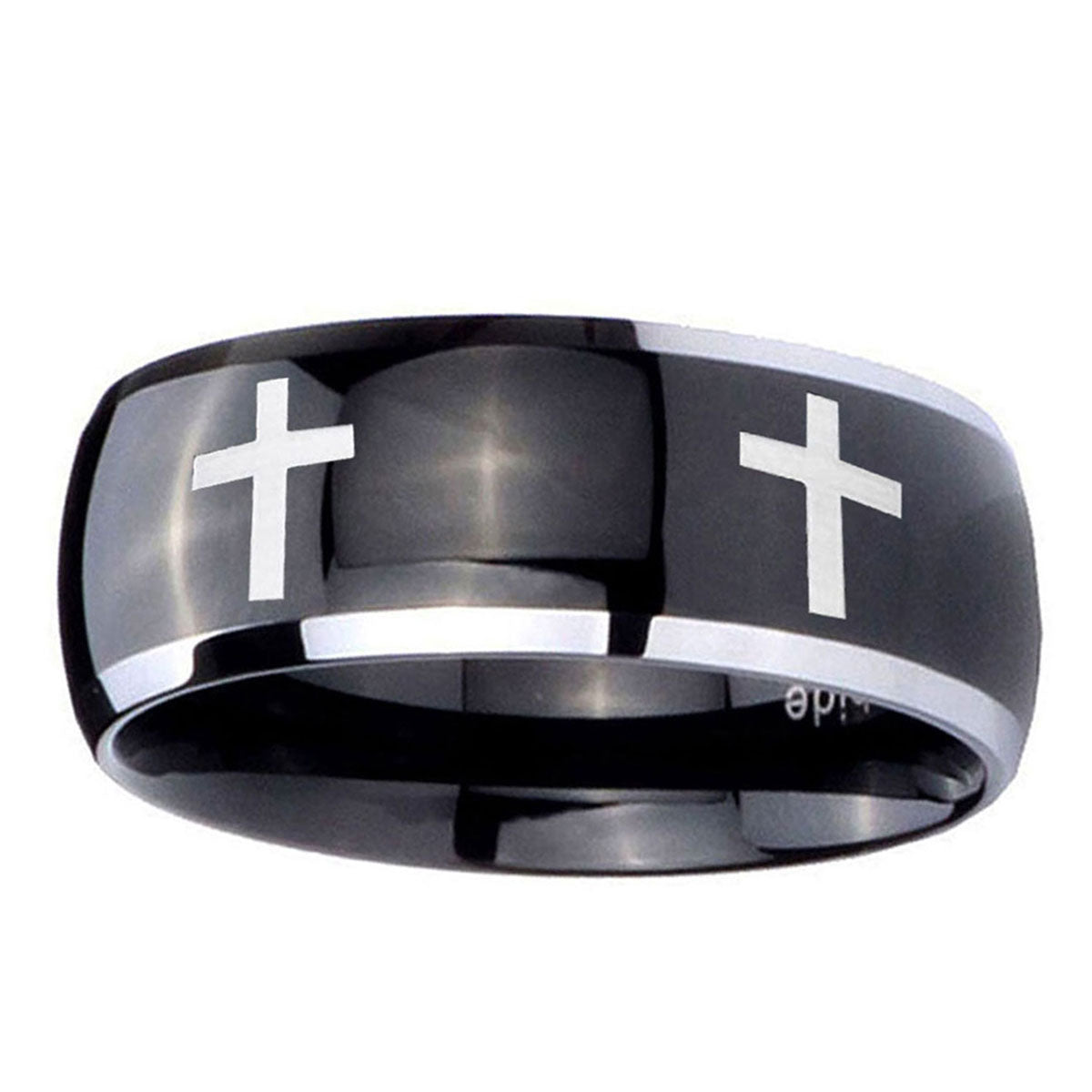 10mm Crosses Dome Glossy Black 2 Tone Tungsten Carbide Men's Promise Rings