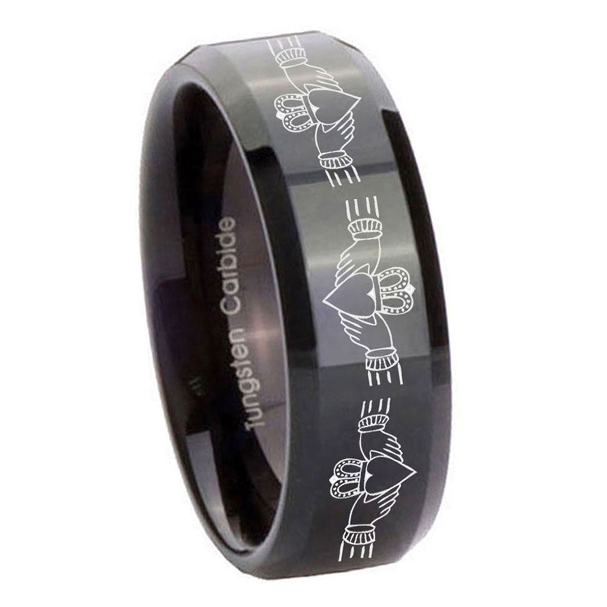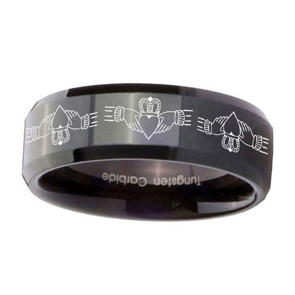 10mm Irish Claddagh Beveled Edges Black Tungsten Carbide Promise Ring
