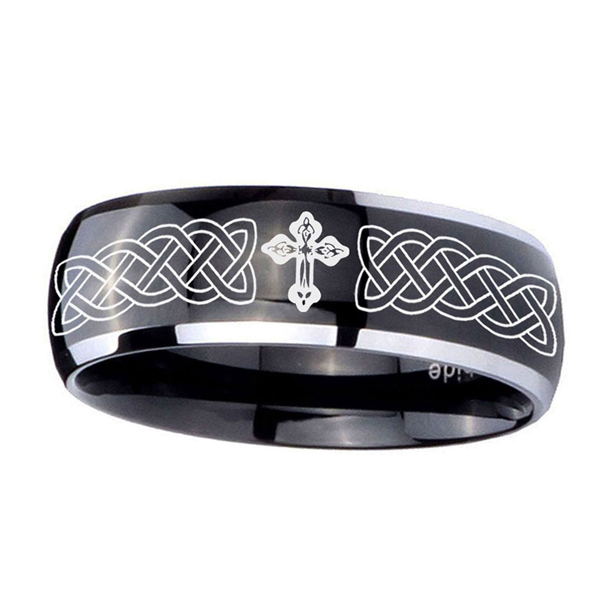 Introuding 5, 8mm Celtic Cross Dome Glossy Black 2 Tone Tungsten Mens Ring Personalized . Offer in both 5mm and 8mm band width polished black plated two tone finished from size 4 to 14