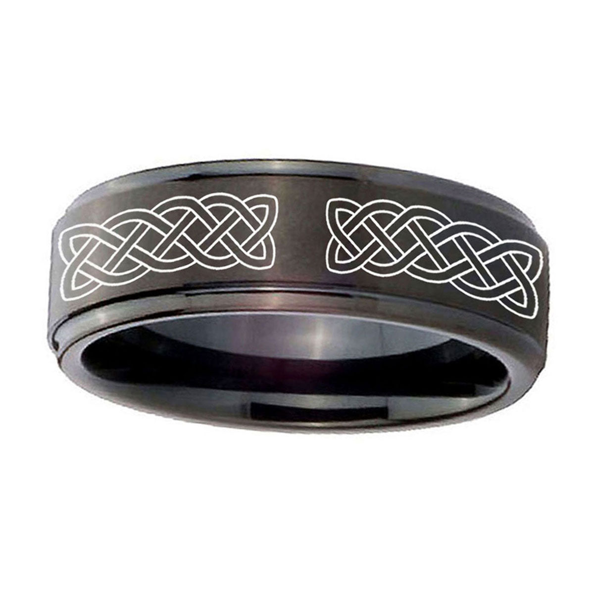 10mm Celtic Knot Step Edges Brush Black Tungsten Carbide Mens Promise Ring