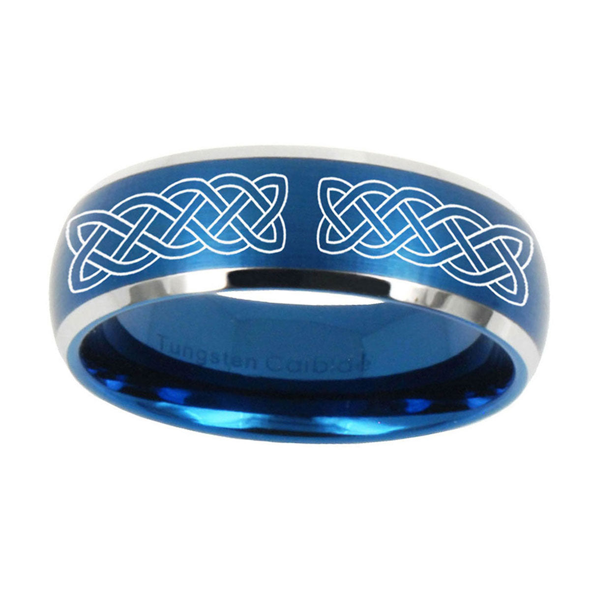 10mm Celtic Knot Dome Brushed Blue 2 Tone Tungsten Mens Ring Personalized