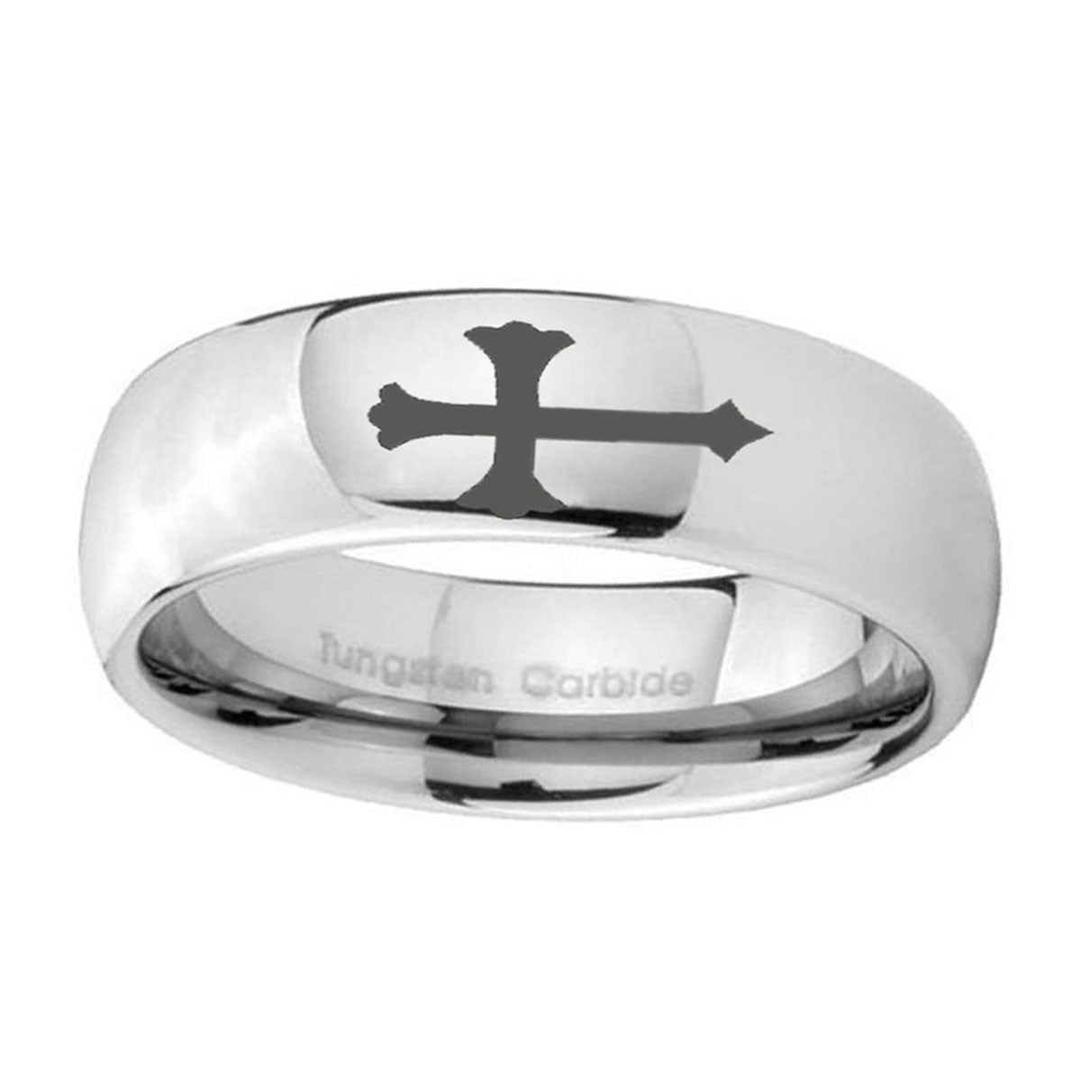 10mm Christian Cross Mirror Dome Tungsten Carbide Mens Ring Engraved