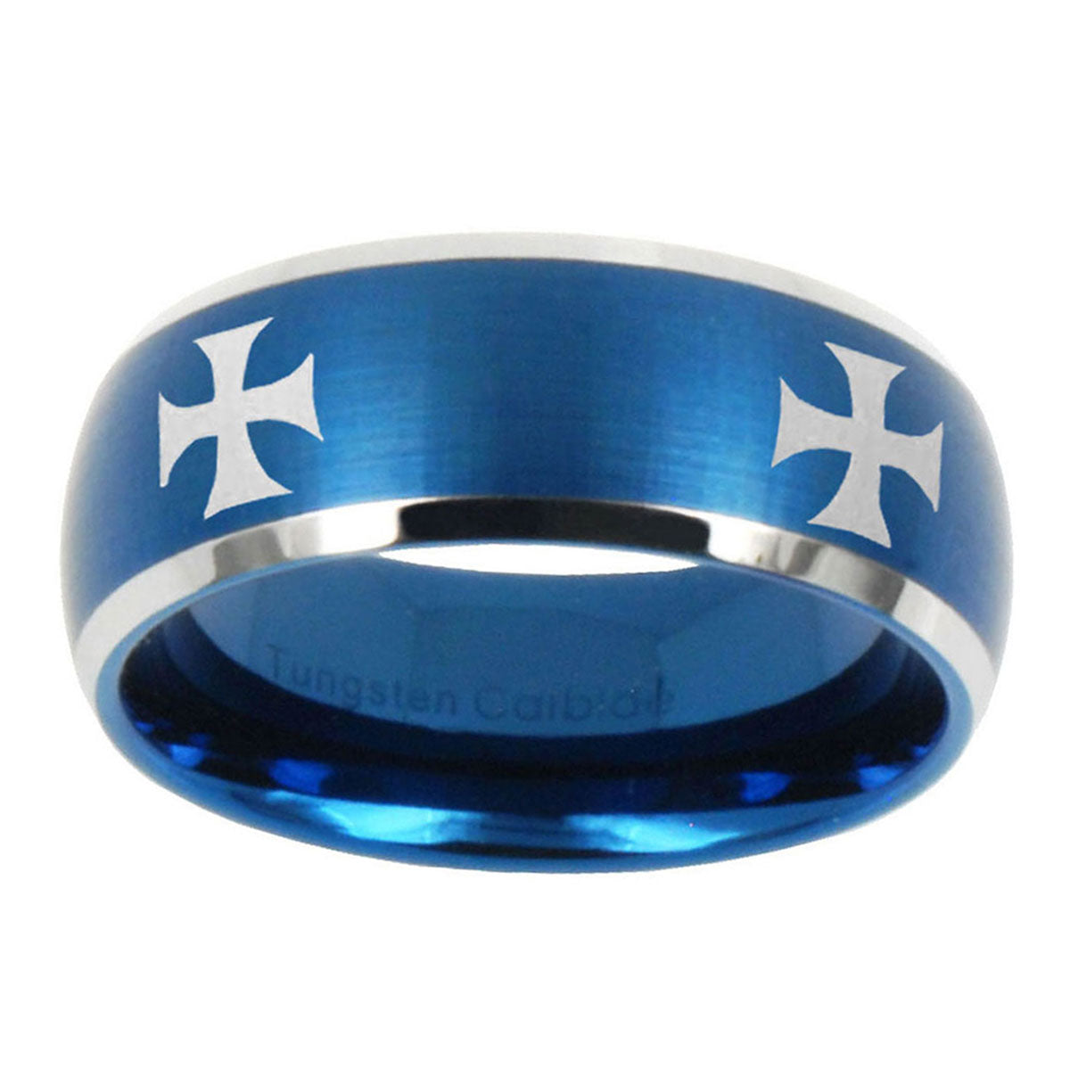 10mm 4 Maltese Cross Dome Brushed Blue 2 Tone Tungsten Men's Engagement Ring