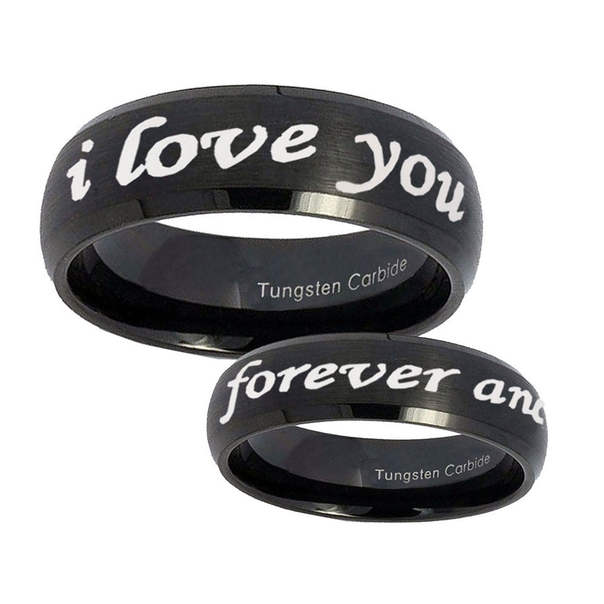 Style the 10mm I Love You Forever and ever Dome Brush Black Tungsten Rings for Men. This brushed black dome ring with I Love You Forever design is perfect for men.