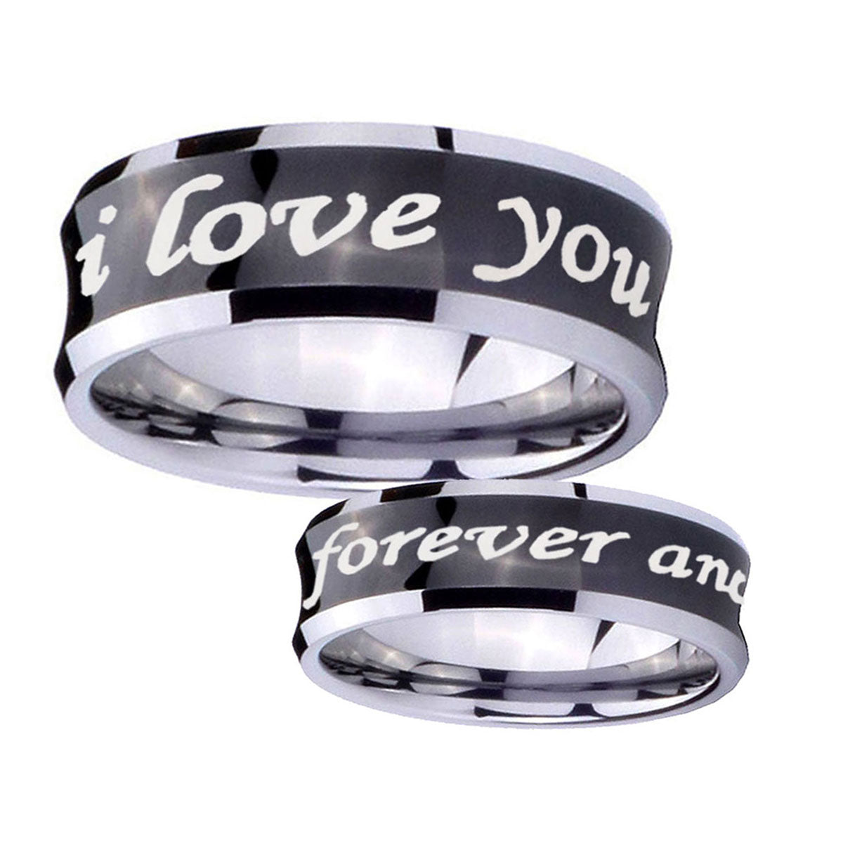 Introuding 5, 8mm I Love You Forever and ever Concave Black Tungsten Carbide Men's Band Ring . Offer in both 5mm and 8mm band width black plated two tone finished from size 4 to 14