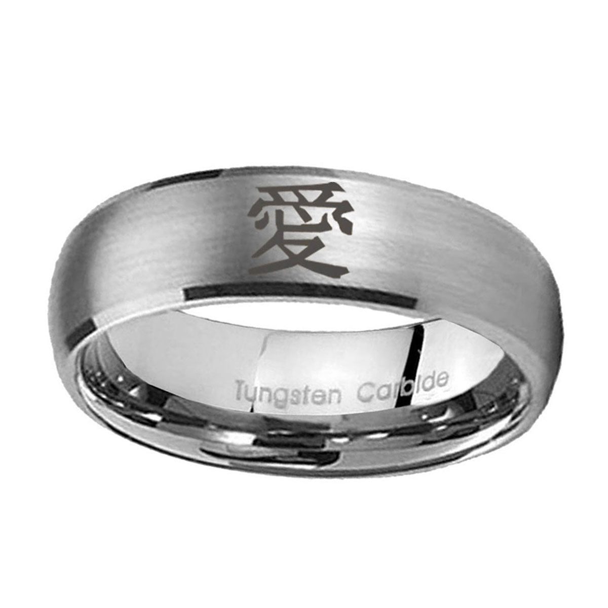 5, 8mm Kanji Love Dome Brushed Tungsten Carbide Mens Engagement Ring