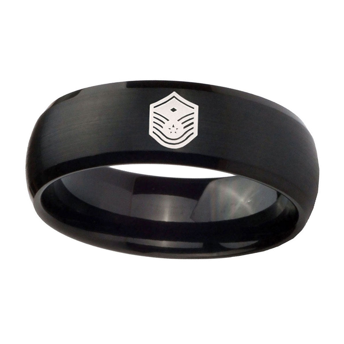 5, 8mm Chief Master Sergeant Vector Dome Brush Black Tungsten Personalized Ring