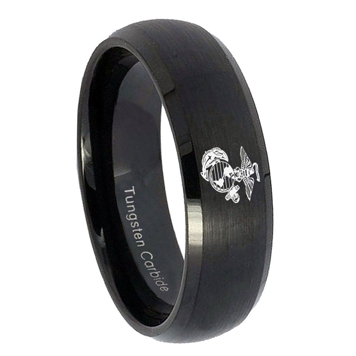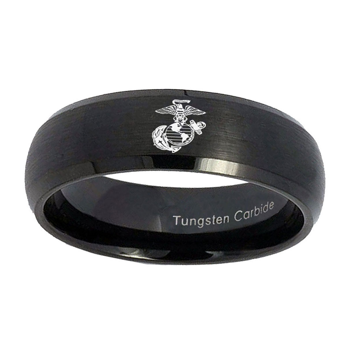 5, 8mm Marine Dome Brush Black Tungsten Carbide Men's Bands Ring