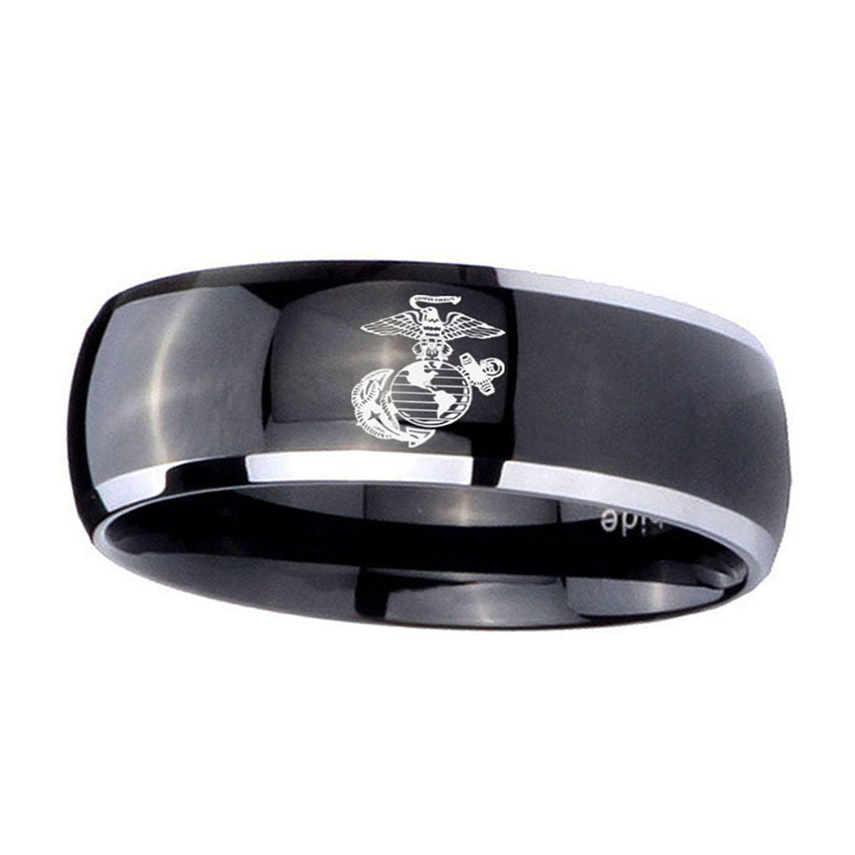 Introuding 5, 8mm Marine Dome Glossy Black 2 Tone Tungsten Carbide Mens Engagement Ring . Offer in both 5mm and 8mm band width polished black plated two tone finished from size 4 to 14