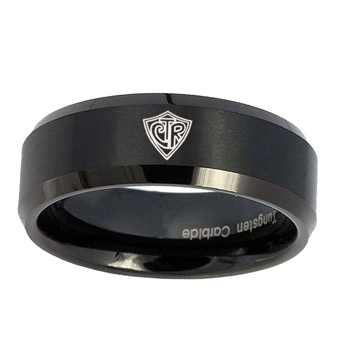 Celebrate with the 10mm CTR Beveled Edges Brush Black Tungsten Carbide Wedding Bands Ring. This brushed black tungsten ring with CTR design is perfect for weddings.