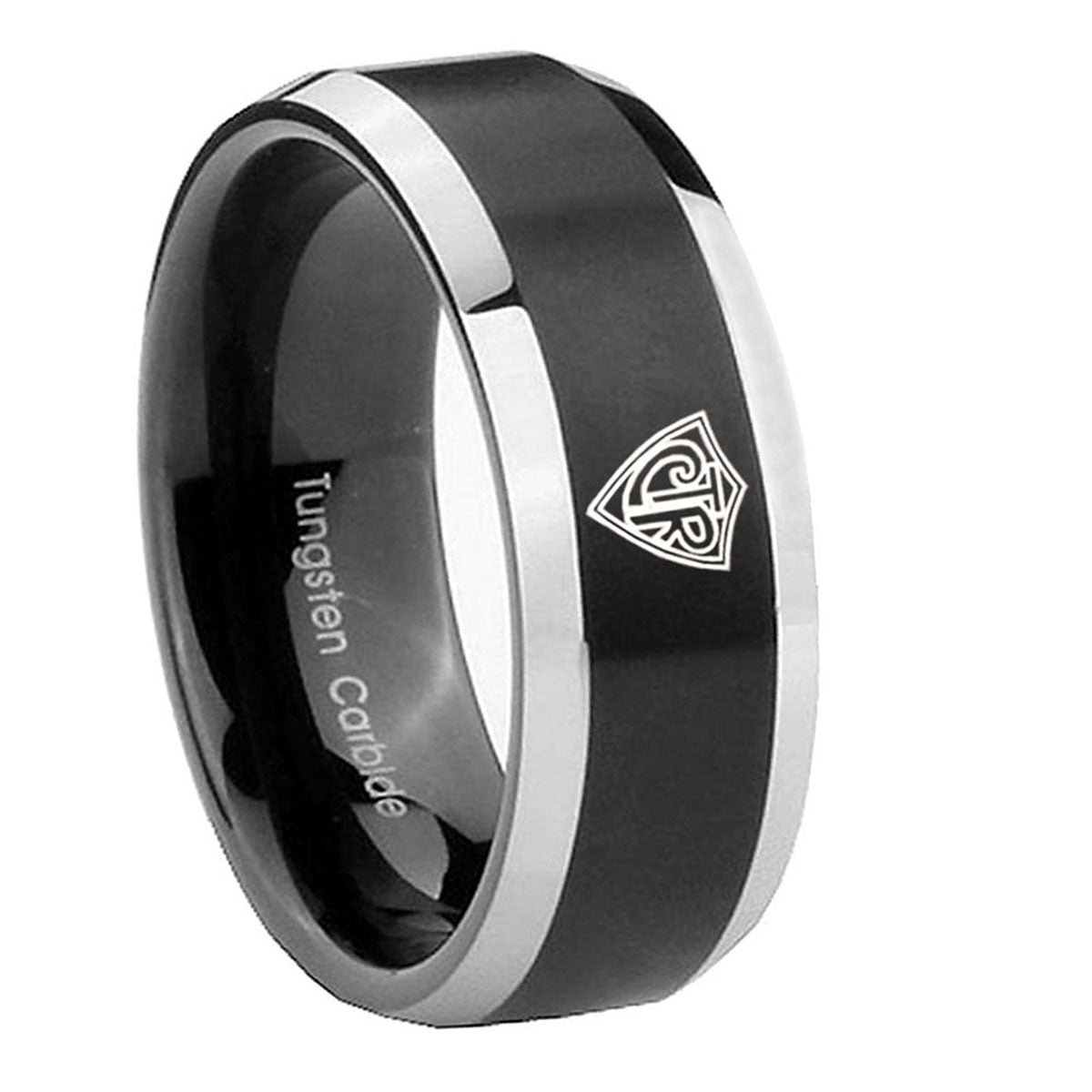 Customize the 10mm CTR Beveled Edges Brush Black 2 Tone Tungsten Carbide Custom Mens Ring. This brushed black and 2-tone tungsten ring with CTR design is perfect for personalization.