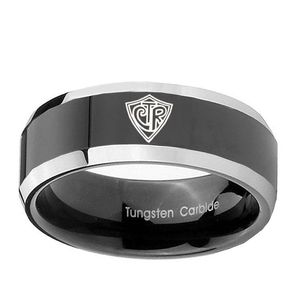 5, 8mm CTR Beveled Edges Glossy Black 2 Tone Tungsten Carbide Bands Ring