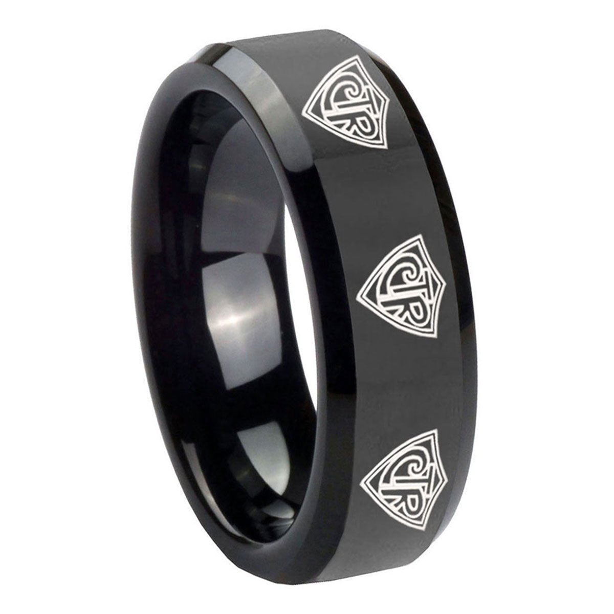 Celebrate with the 10mm Multiple CTR Beveled Edges Black Tungsten Carbide Wedding Band Ring. This black tungsten ring with Multiple CTR design is perfect for weddings.