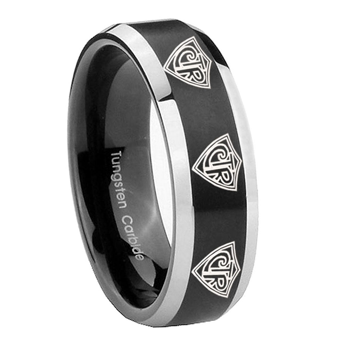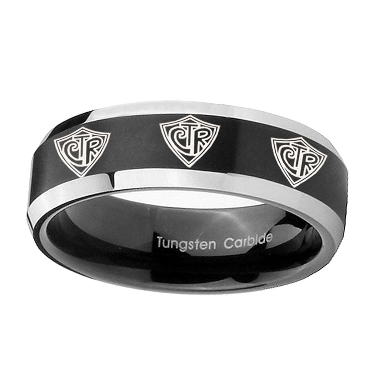 Personalize the 10mm Multiple CTR Beveled Edges Brush Black 2 Tone Tungsten Personalized Ring. This brushed black and 2-tone tungsten ring with Multiple CTR design is perfect for custom engravings.