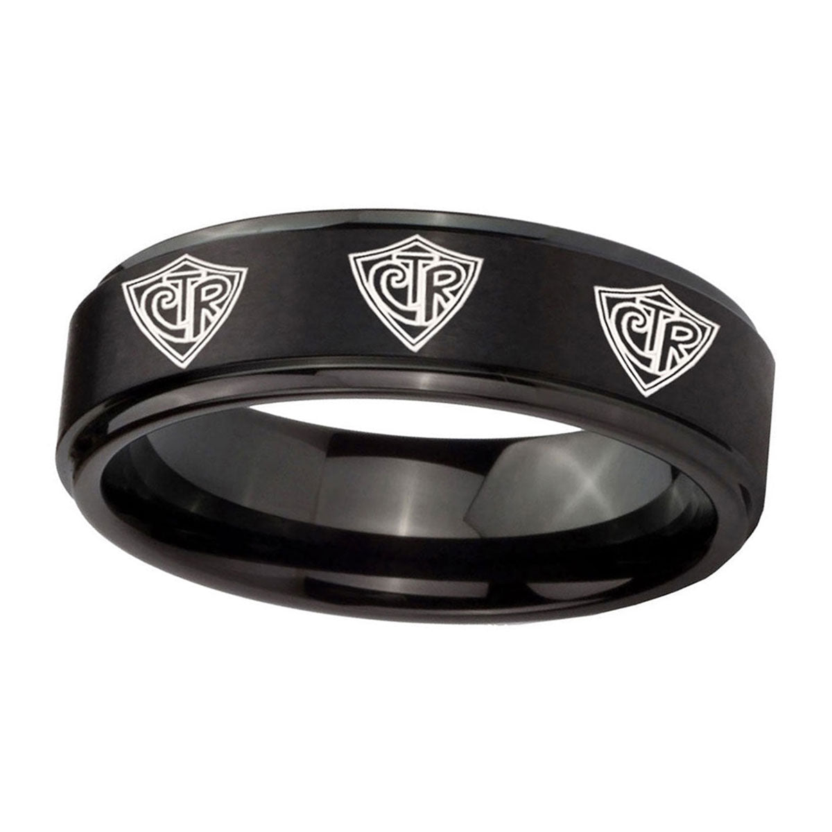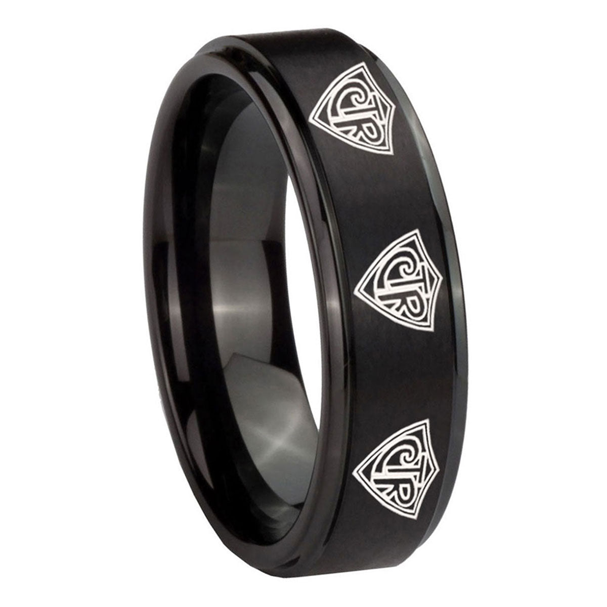 Celebrate with the 10mm Multiple CTR Step Edges Brush Black Tungsten Carbide Men's Wedding Ring. This brushed black ring with step edges and Multiple CTR design is perfect for weddings.