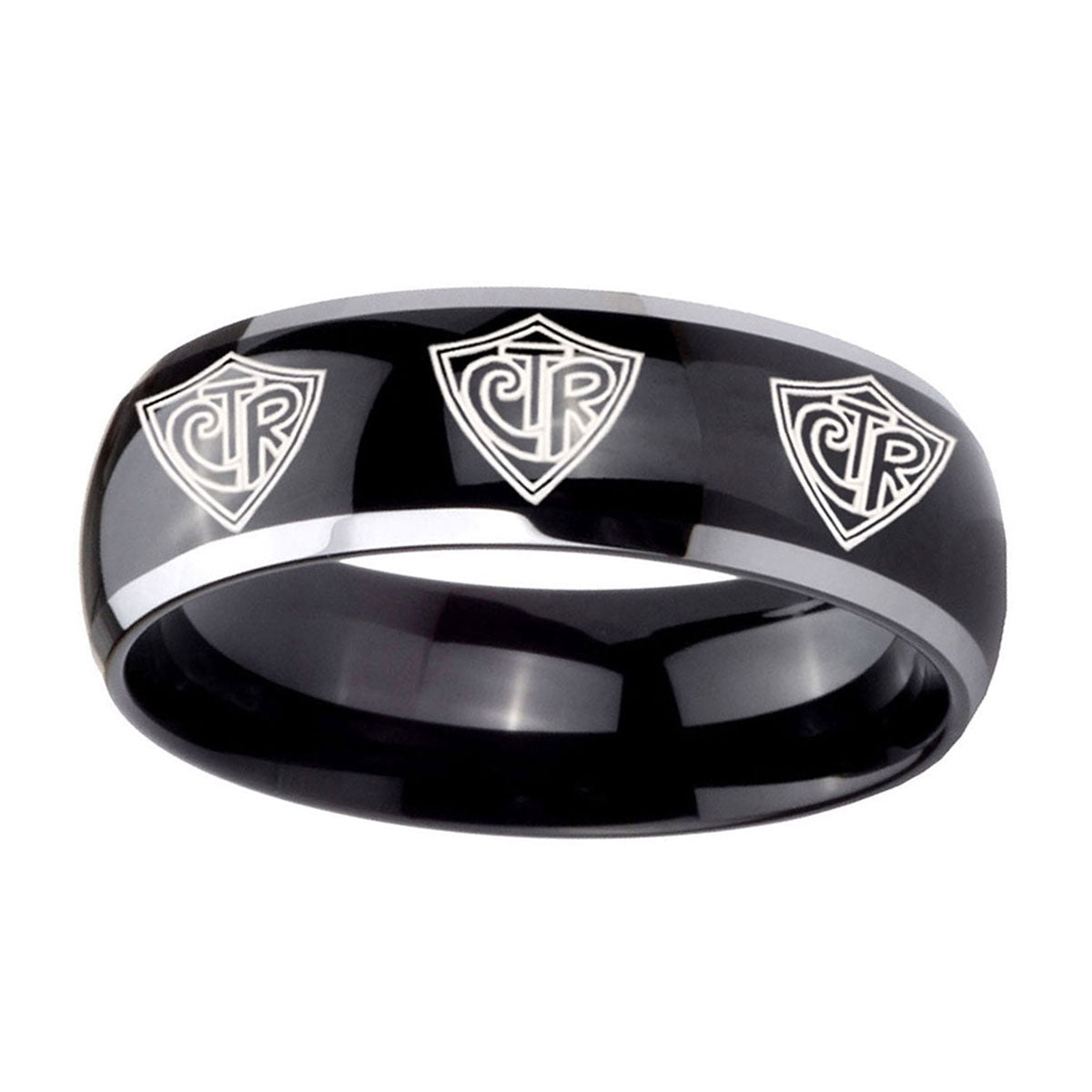 10mm Multiple CTR Dome Glossy Black 2 Tone Tungsten Mens Anniversary Ring